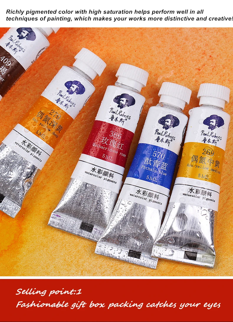 Тюбики для акварельных красок Paul Rubens, 5 мл, 1 шт., свежие яркие цвета, профессиональный пигмент, акварель, портативные дорожные для товары для рукоделия