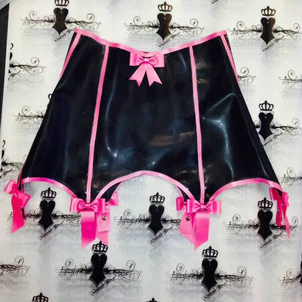 Латексные резиновые черные розовые подвязки с бантом спортивные сек...