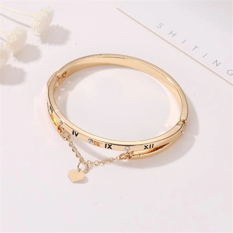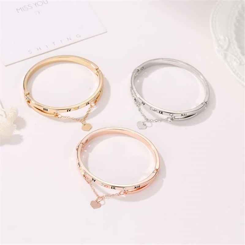 Корейские браслеты с подвесками в виде римских цифр и сердца для же...