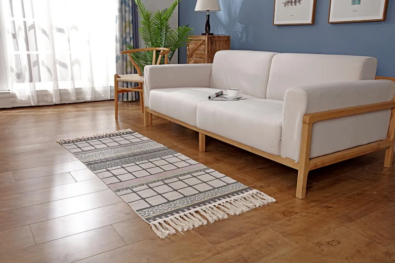 Плетеный Ковер в стиле ретро в стиле бохо из хлопка и льна с кисточ...