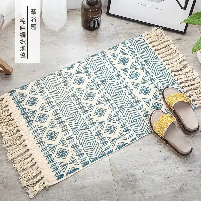 Хлопковый тканый ковер в стиле бохо, ретро-ковер с кисточками, напольный коврик, гобелен для спальни, декоративное одеяло, ковер для чайной гостиной