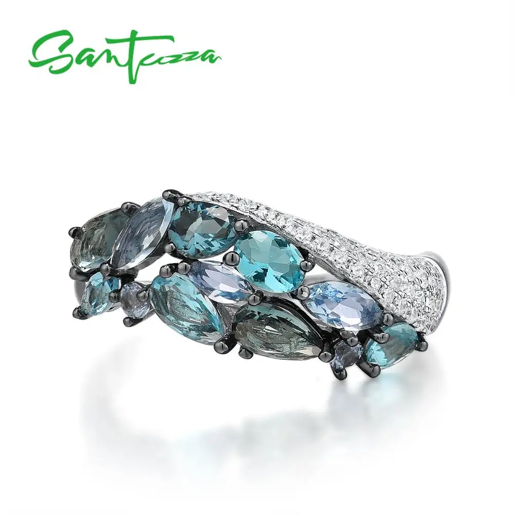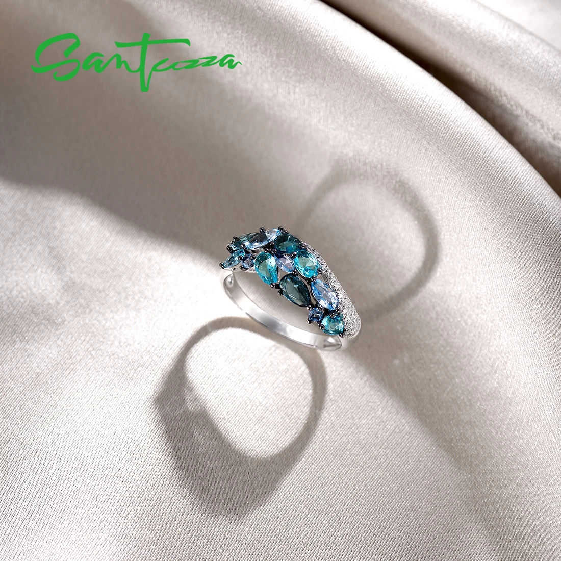 Женское серебряное кольцо SANTUZZA, из серебра 925 пробы, с мерцающим синим камнем, с кубическим цирконием, модные ювелирные украшения из драгоценных камней
