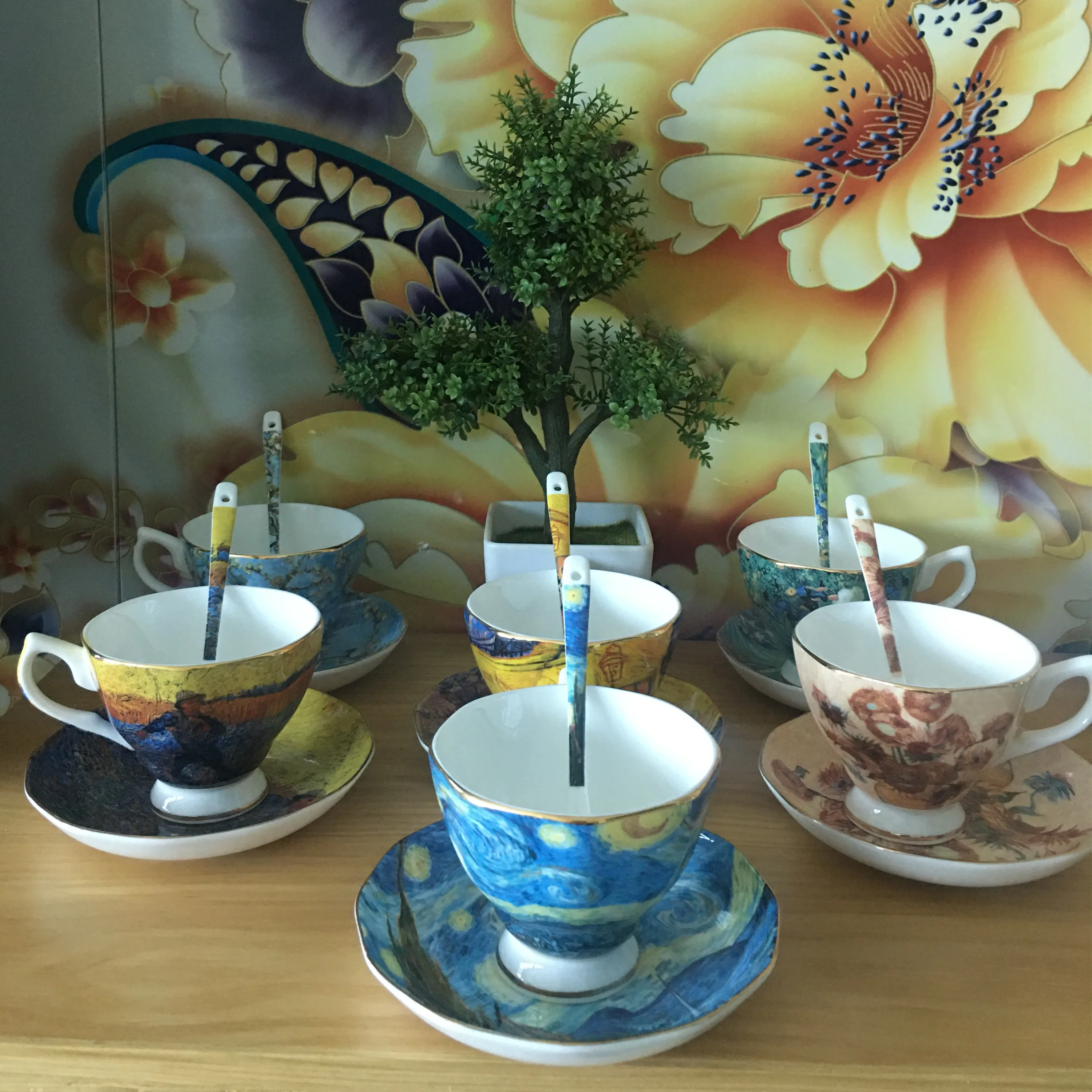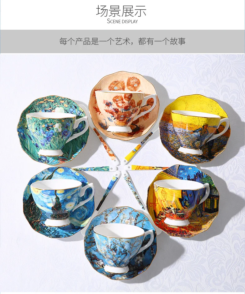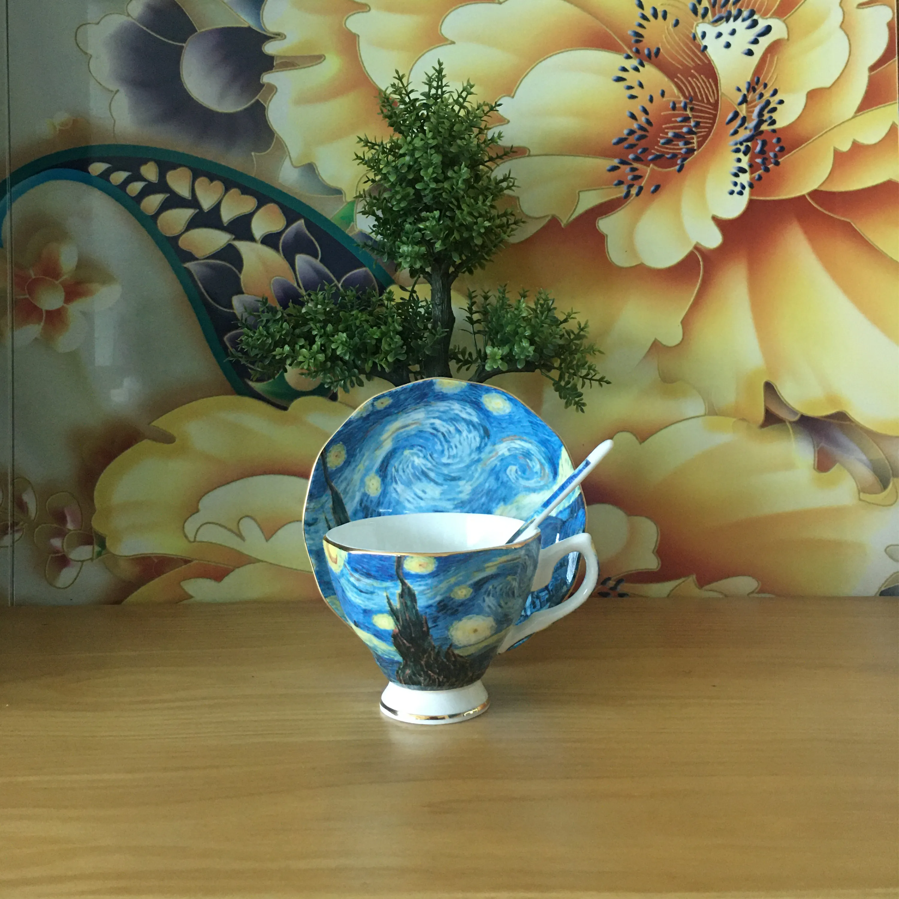 Прямая поставка Звездное небо, ночное кафе, Сеятель, Подсолнухи, ирисы, абрикосовые цветы, картина кофейного кружки чашки для чая