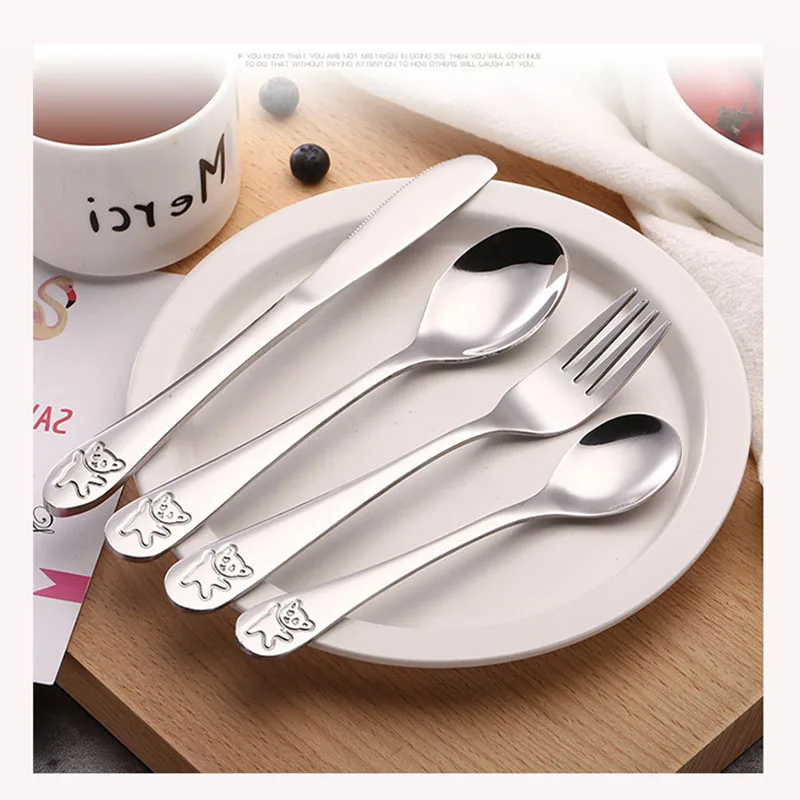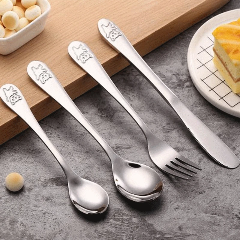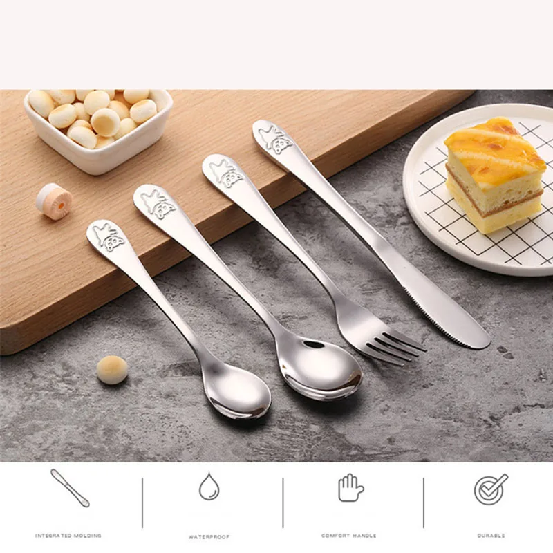 Детская портативная посуда из нержавеющей стали, ложка для чайной ложки, вилка, нож, посуда для детей, обучающая еде, детская посуда