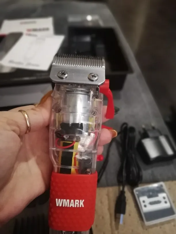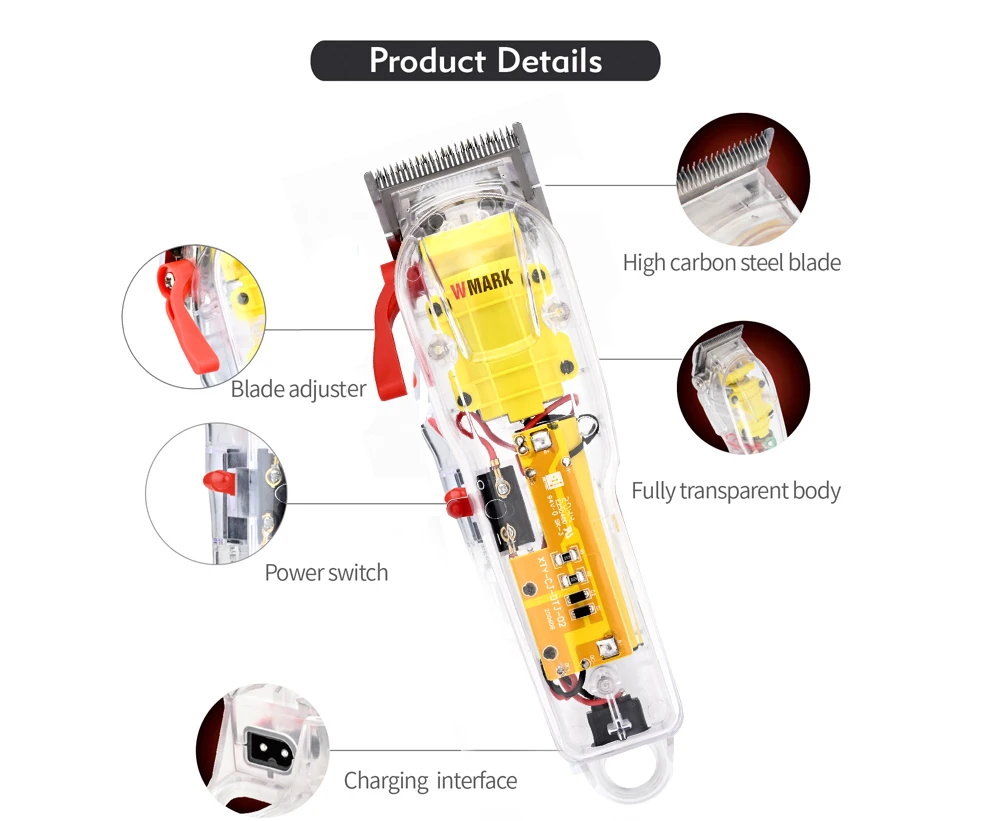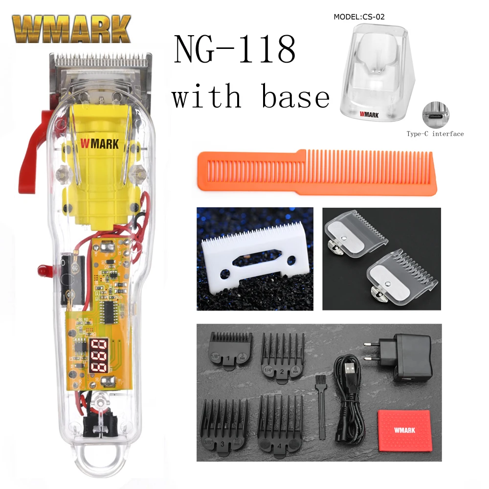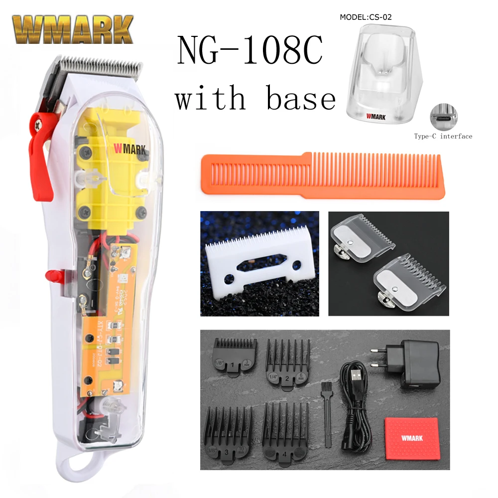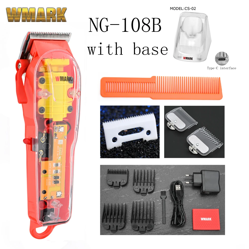 Машинка для стрижки волос WMARK, аккумуляторная машинка для стрижки волос с прозрачной крышкой, белая или красная основа, 2021 обмин, 7300