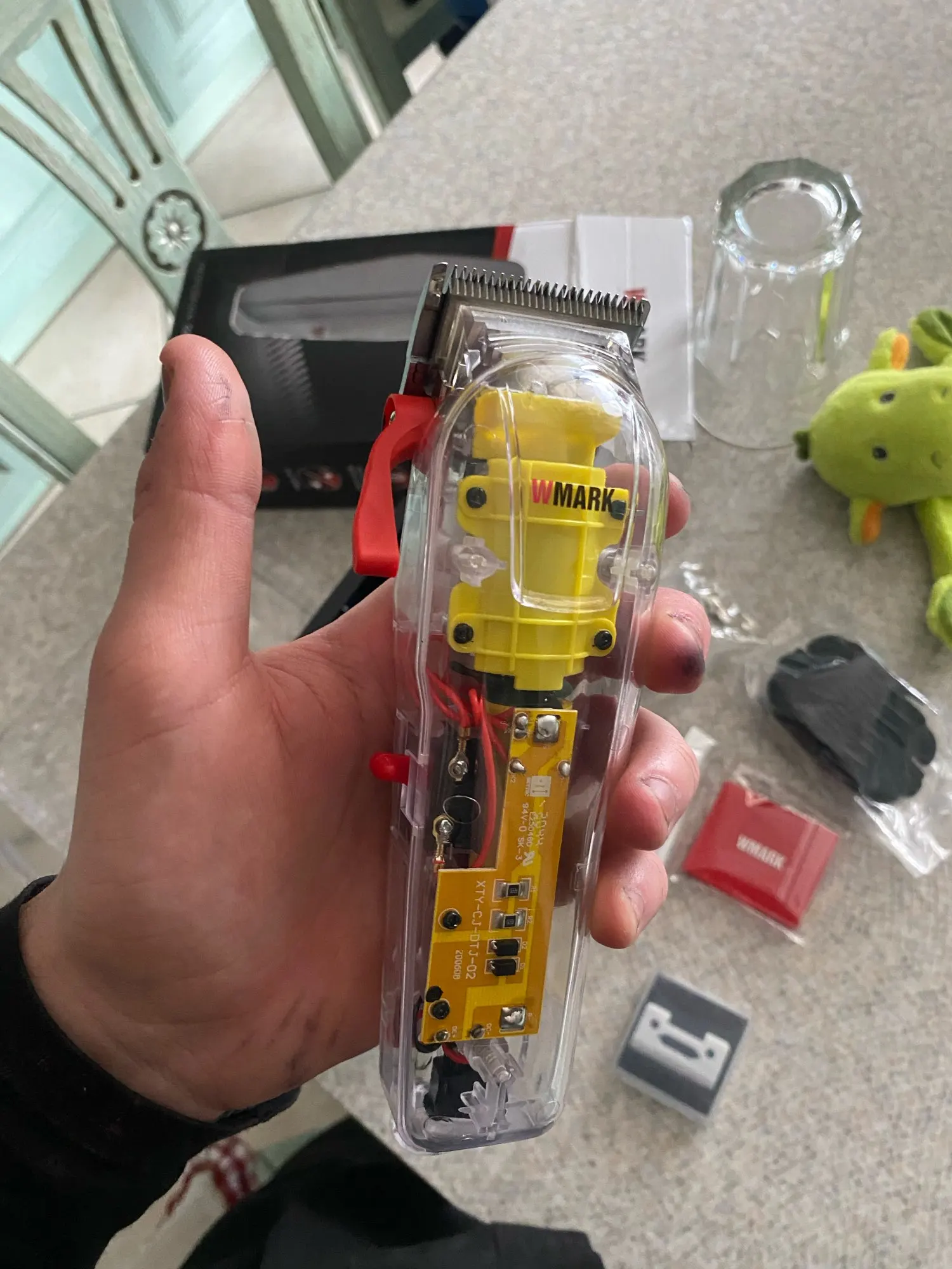 Это машинка. Как я в последствии выяснил - она нужна для отстригания не нужного волосяного покрова. Работает нормально. 2 проблемы: 1 трахался с резинкой на ручку 2 часа она слишком узкая. 2 на переднем клюве под пластик забилось пара волосинок( для меня не критично, для стригущего маньяка проблемко)