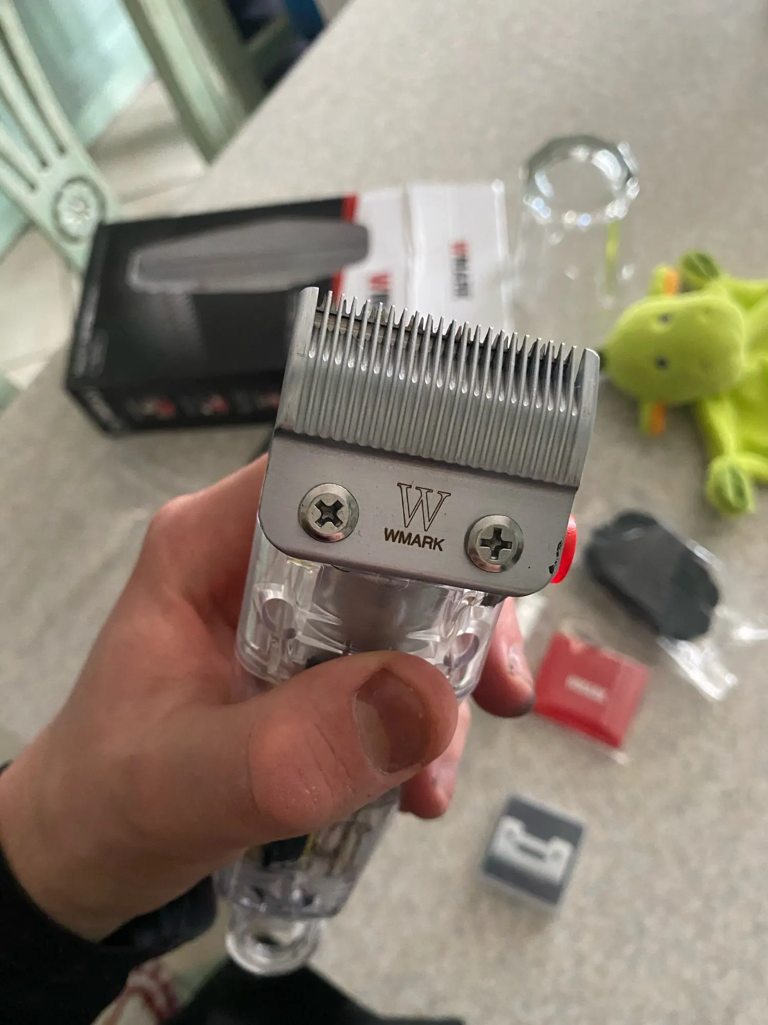 Maquina realmente excelente! muito forte. Super recomendo a maquina e o vendedor. Eu coloquei uma lâmina fade e cerâmica serrilhada a maquina ficou sensasional. Demorou 17 dias para entrega.
