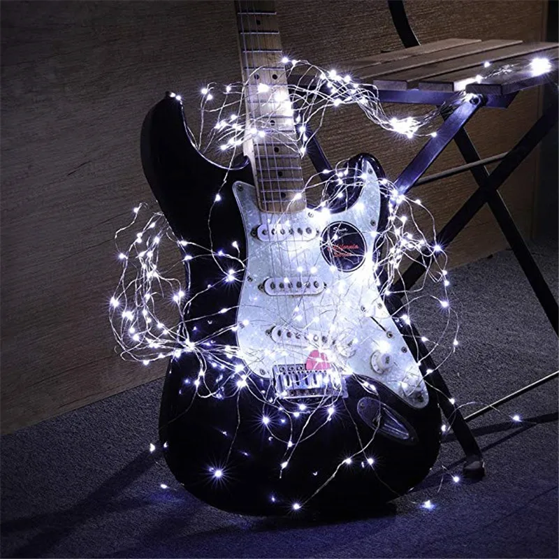Гирлянда с питанием от батарейки AA, 1 м, 10, 2 м, 20, 3 м, 30, 5 м, 50, 10 м, 100 светодиодов, серебристая светодиодная гирлянда из медной проволоки, декоративная гисветильник лянда s