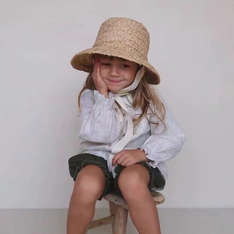 Шляпа Детская из рафии, Соломенная Панама с плоским верхом и складывающимися полями в стиле ретро, для путешествий и для отдыха соломенный, ручная работа