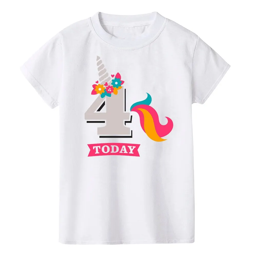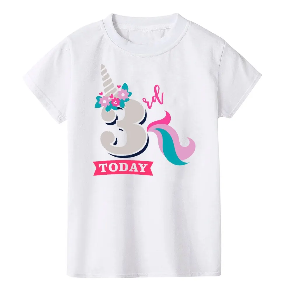 Футболка с надписью Happy Birthday Present Футболка с принтом Единорог для девочек 1-6 лет Детская одежда забавные белые топы для малышей