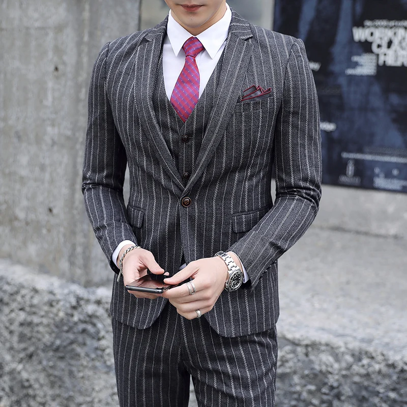 Высококачественный Свадебный мужской костюм в полоску, модный прита...