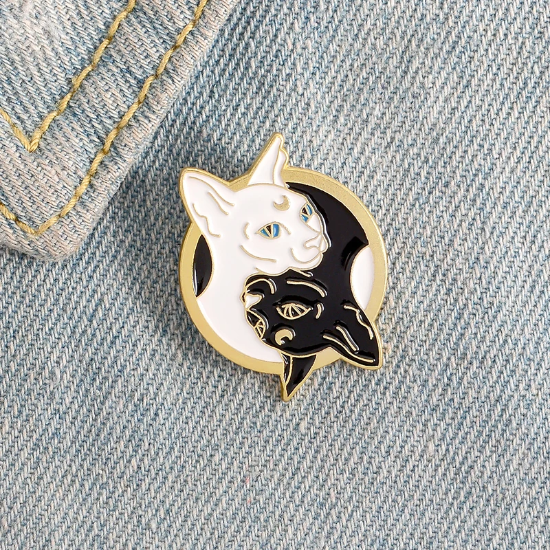 Эмалированная брошь Taichi с котами, на заказ, значок с ведьмой, ко...