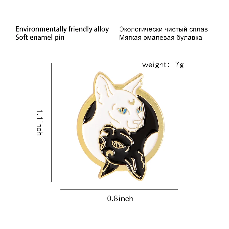 Значки Taichi в виде сфинкса, кошки, черные, белые, с двумя котенками, ведьмы, колдовские, волшебные кошки, животные, ювелирные изделия, Броши Булавки на лацкан для детей