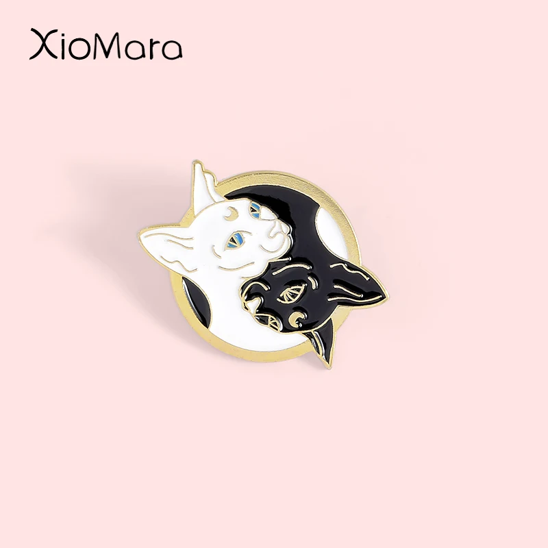 Мультяшная черно-белая брошь в форме кошки Сфинкса значок индивидуа...