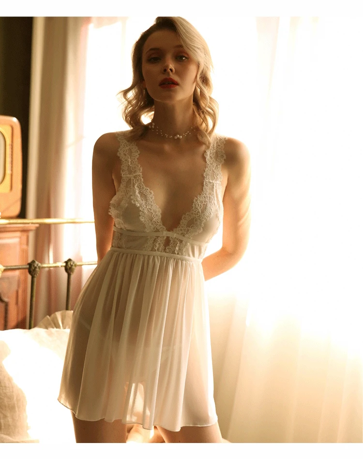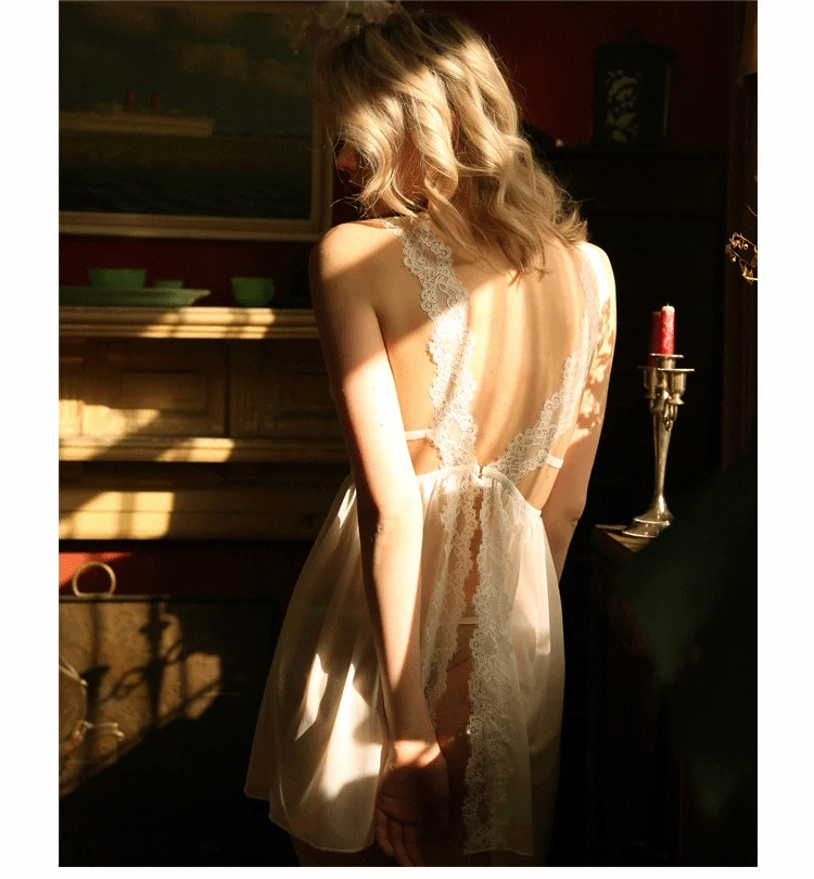 Сексуальная Женская кружевная прозрачная сетчатая ночная рубашка, Пижама