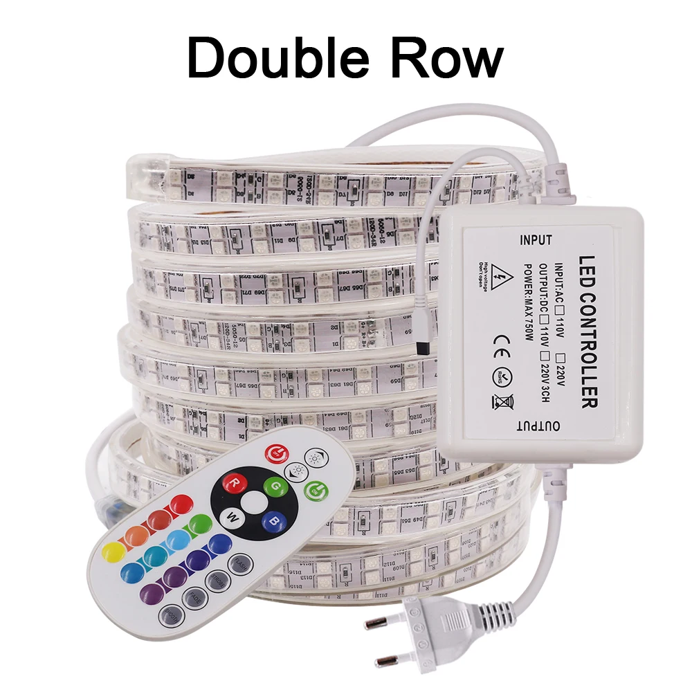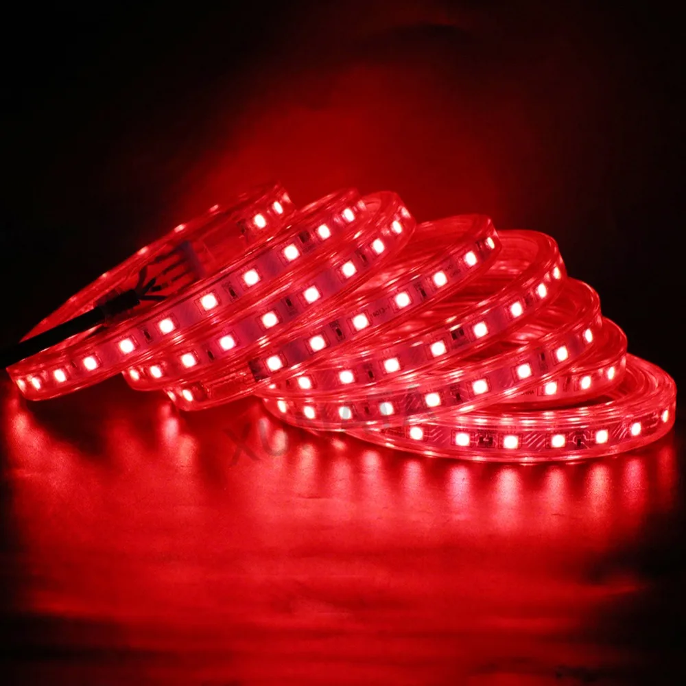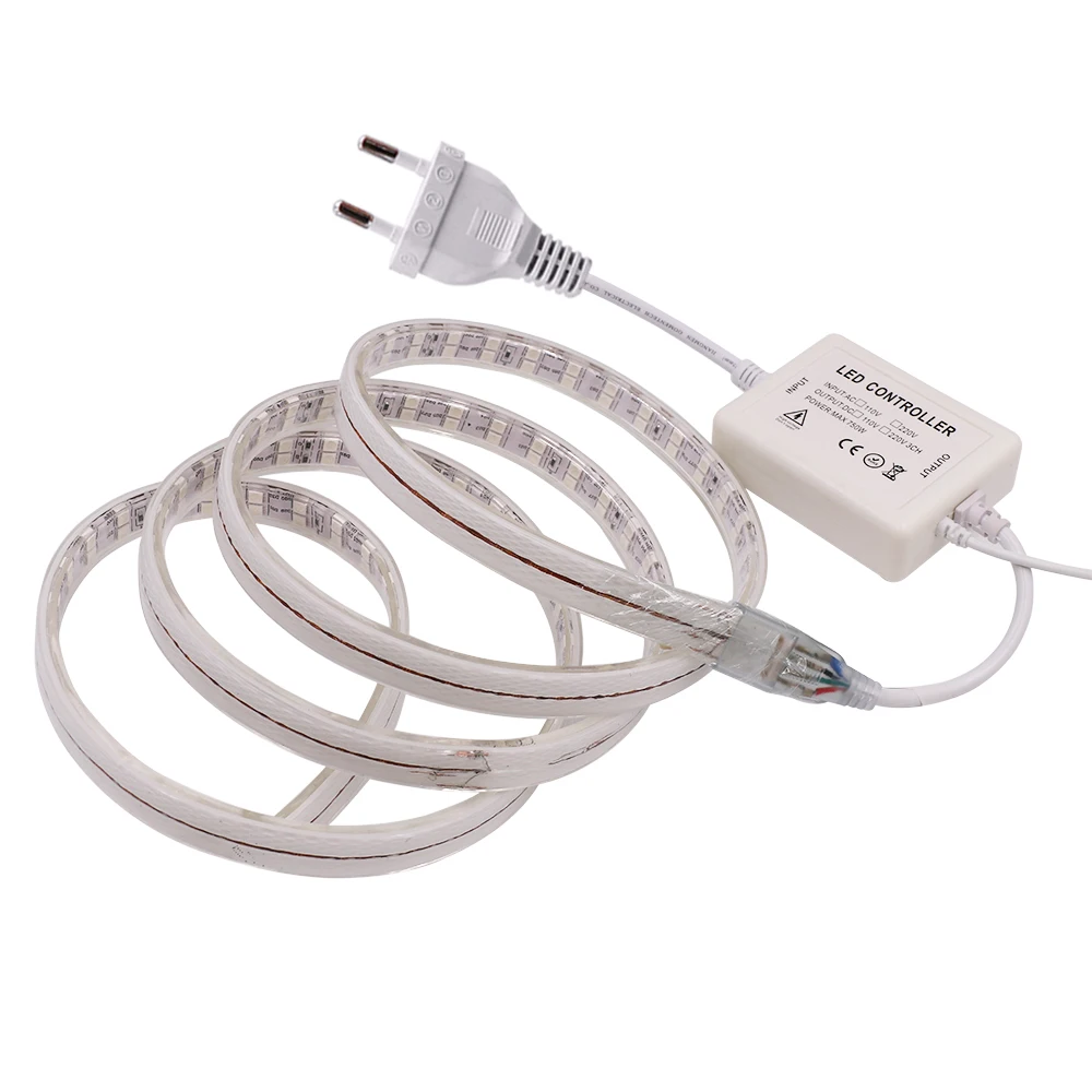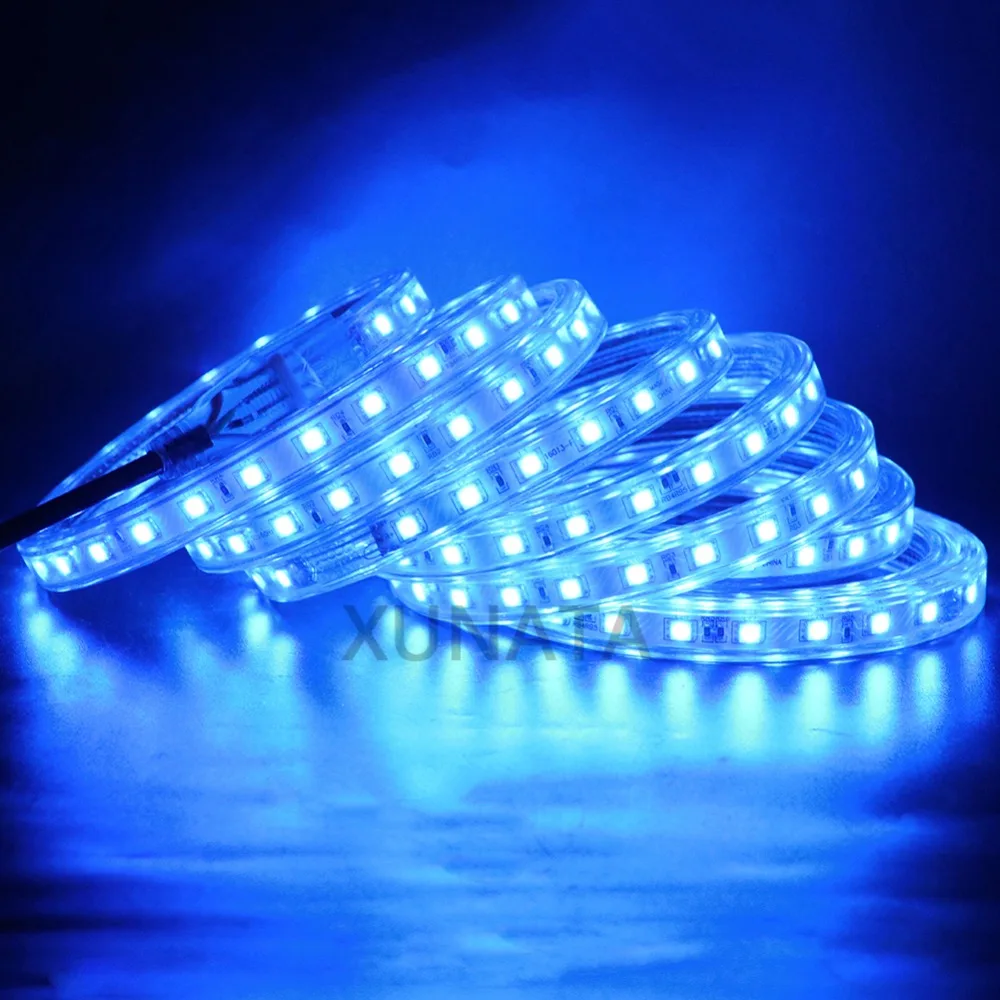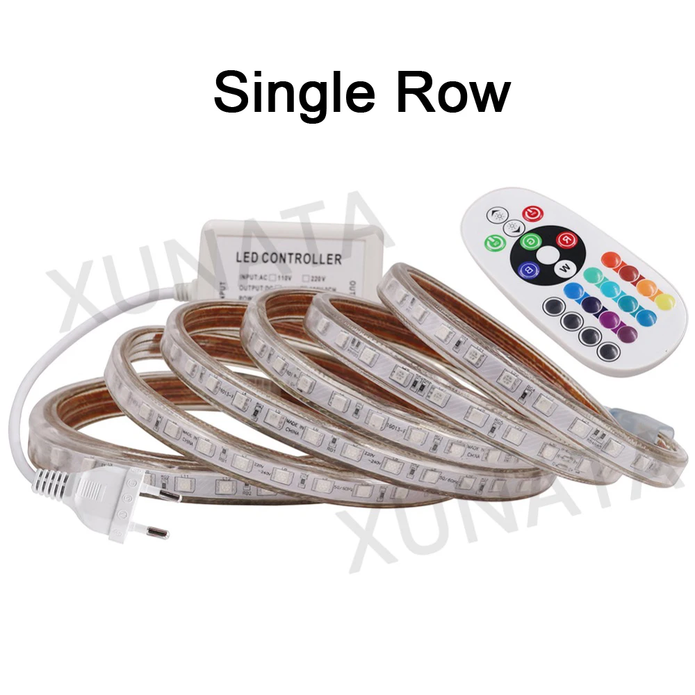 Суперъяркая Светодиодная лента RGB 5050 220 В светодиодов60 светодиодов, водонепроницаемая светодиодная лента с дистанционным управлением, гибкая светодиодная лента, украшение для дома