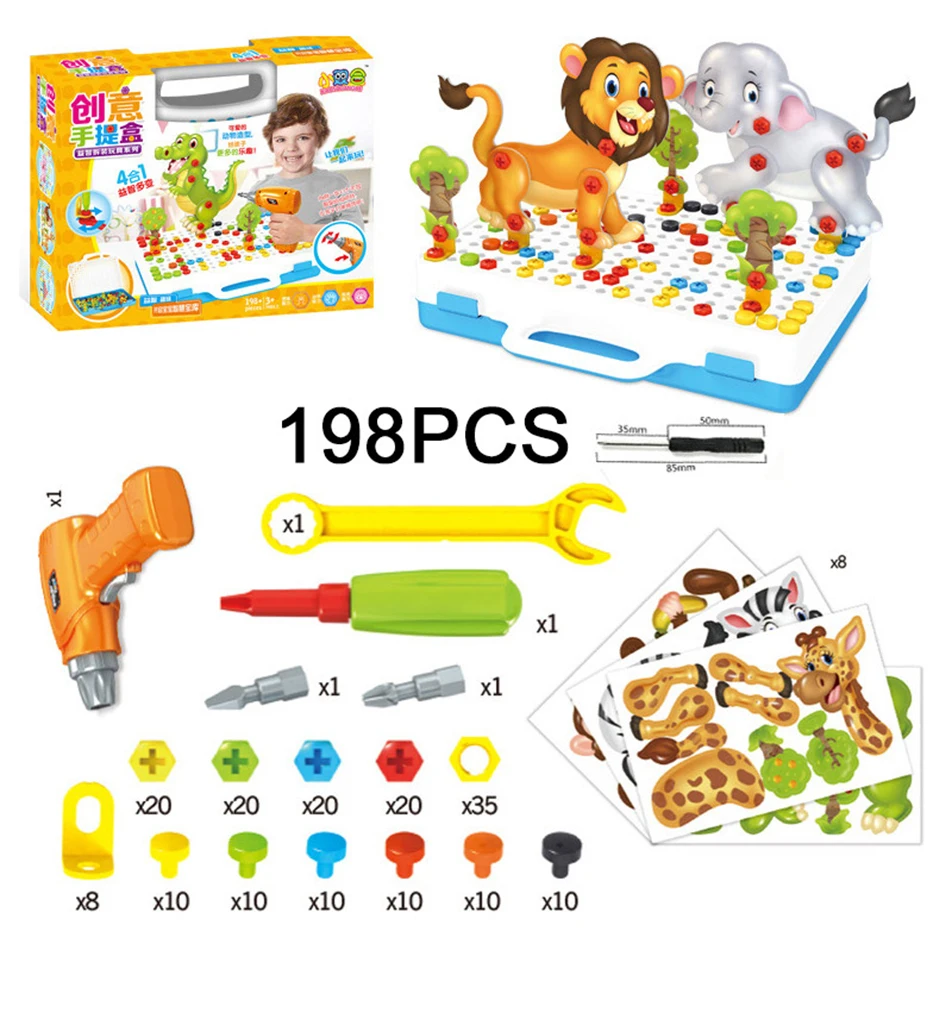 Электрическая дрель, шурупы, инструменты, 151198 шт., творческие развивающие игрушки для детей, игрушечные дрели