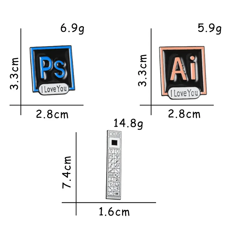 Брошь для инструментов Photoshop, значок для инструментов I Love You, значок для инструментов AI, значок для лацкана, куртки, рюкзак, джинсовая эмалированная булавка, дизайнерские ювелирные изделия на заказ