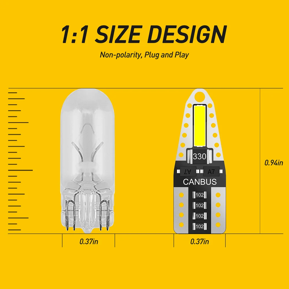 1. Светодиодный светильник имеет клеммы "+" и "-", если светодиодный светильник не поднимается, просто переверните его на 180 градусов, чтобы изменить полярность.2. Пожалуйста, подтвердите, что ваша розетка T10 перед заказом.