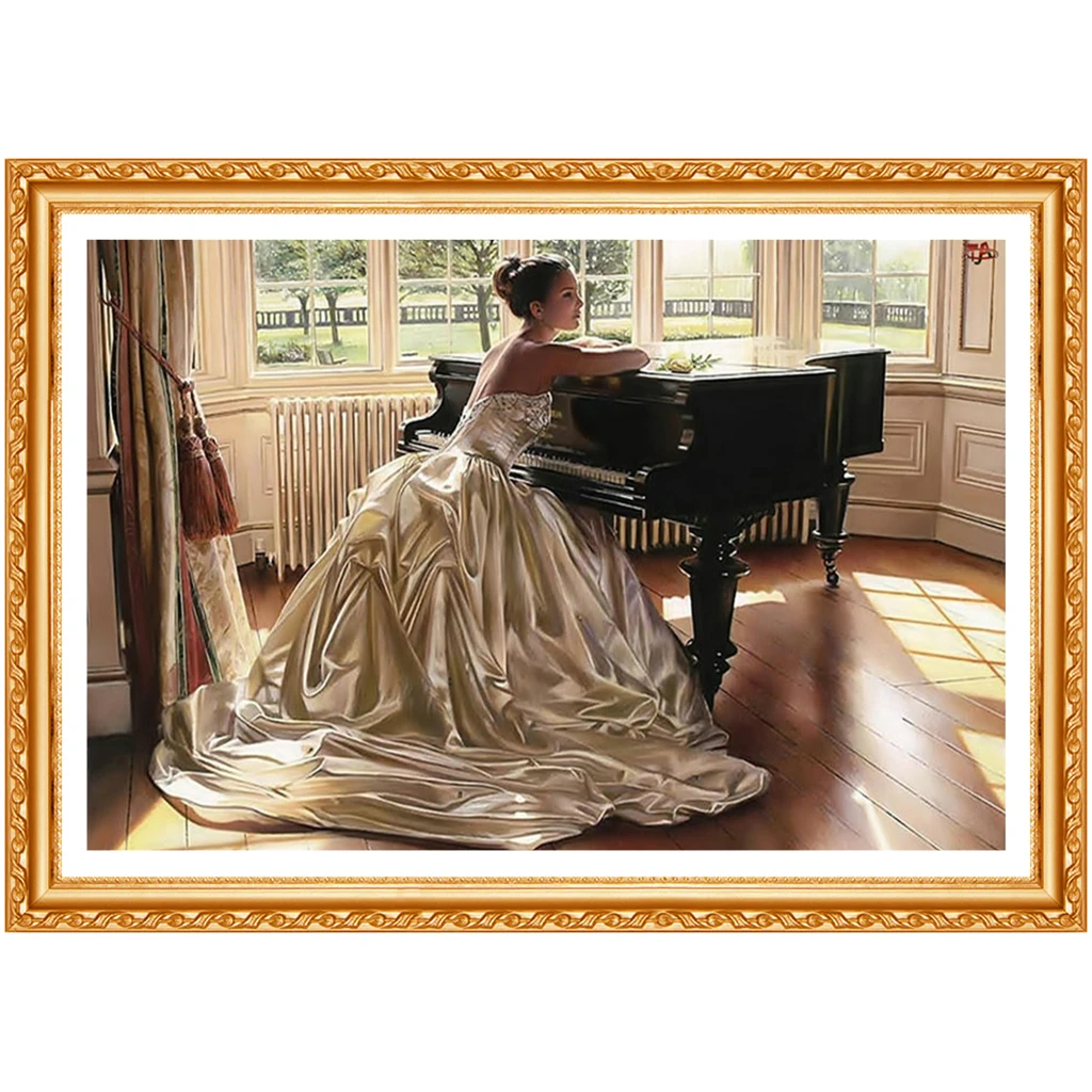 DIY 5D алмазная живопись люди вышивка рукоделие подарок полный квадратный девушка и фортепиано Алмазная вышивка крестиком наборы F375
