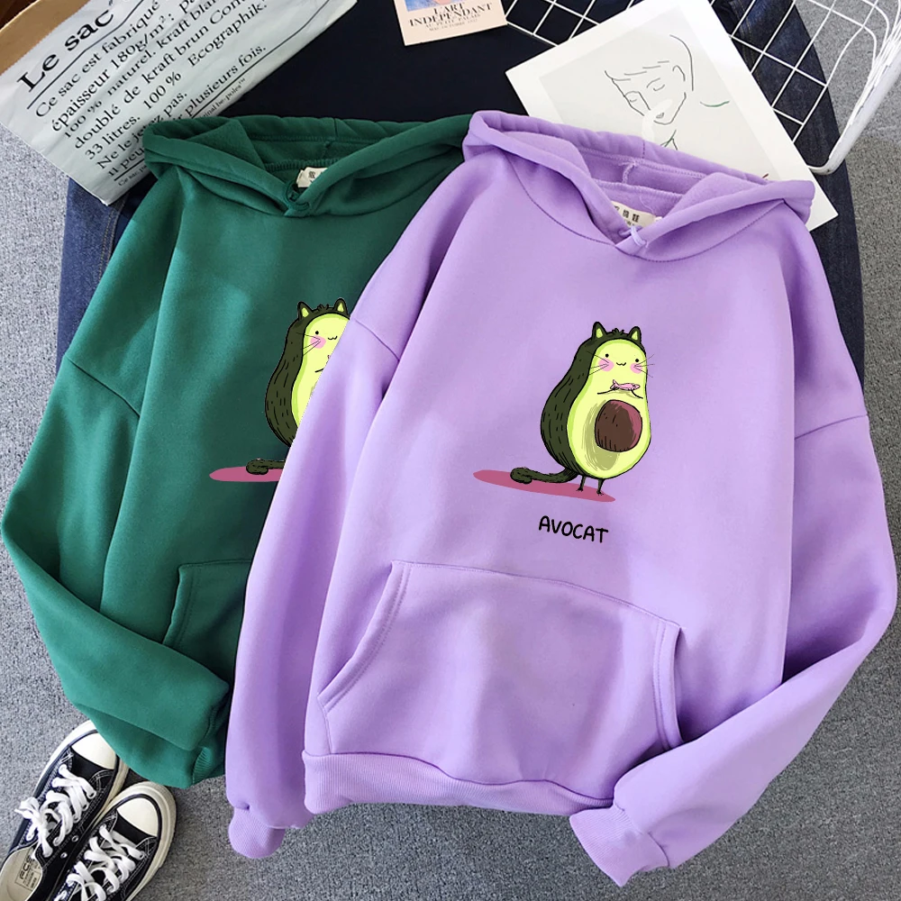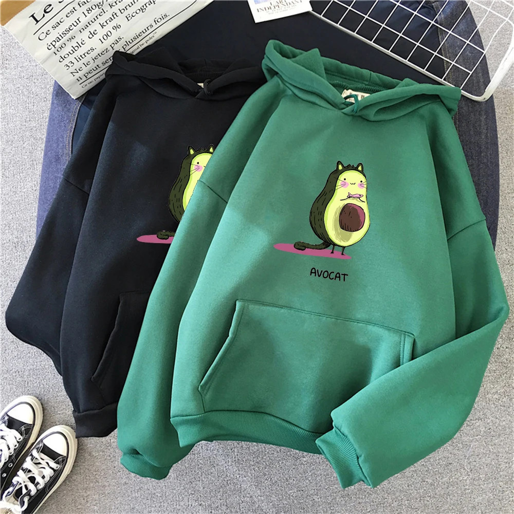 Свитшот с надписью авокадо, зимняя Милая Толстовка в стиле Харадзюку, большие размеры, Женская толстовка с капюшоном в стиле K-POP, Женская милая уличная одежда с длинным рукавом