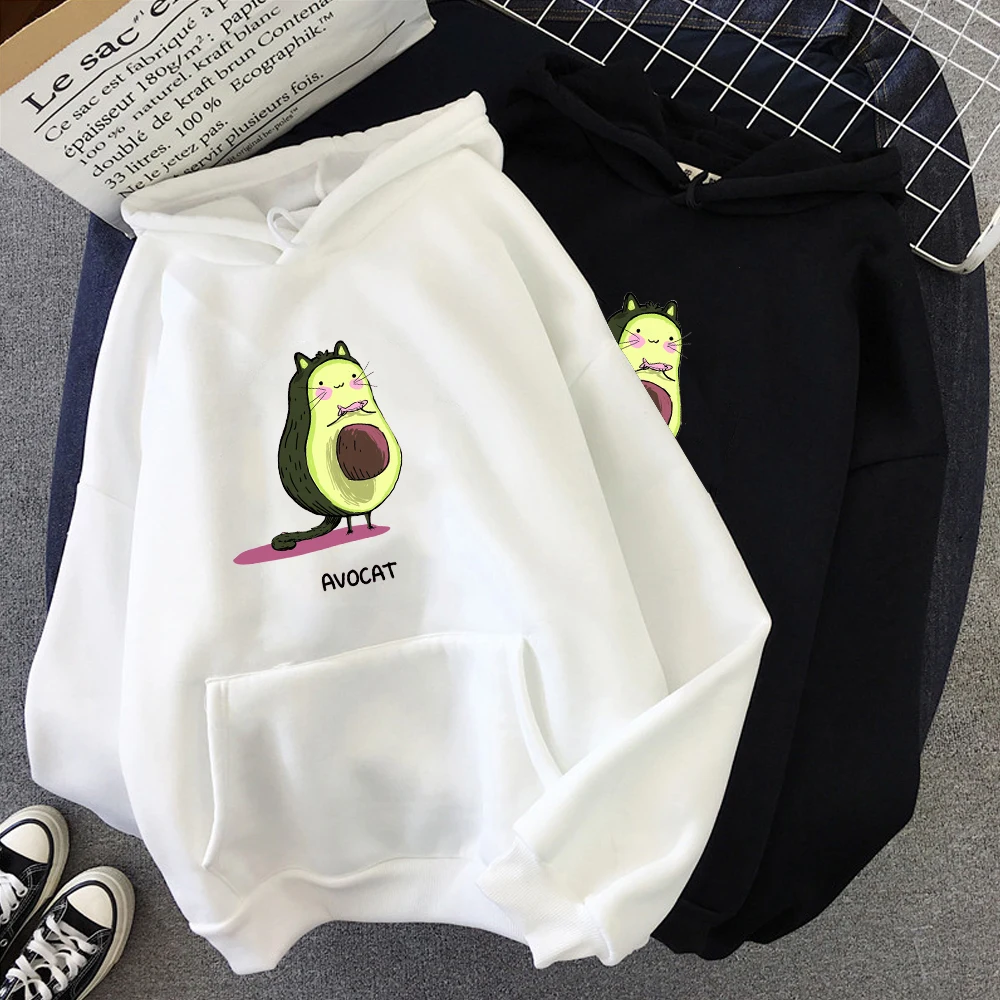 Толстовка с принтом в виде букв авокадо; Сезон Зима; Harajuku Kawaii; Большие размеры; Толстовки с капюшоном; Женская милая уличная одежда с длинными рукавами