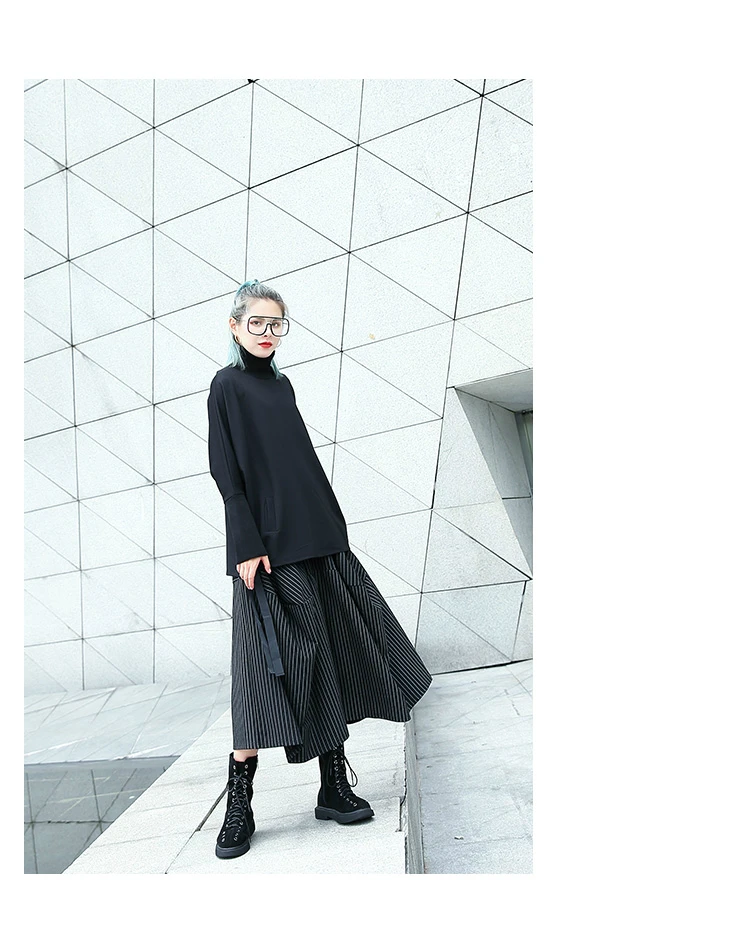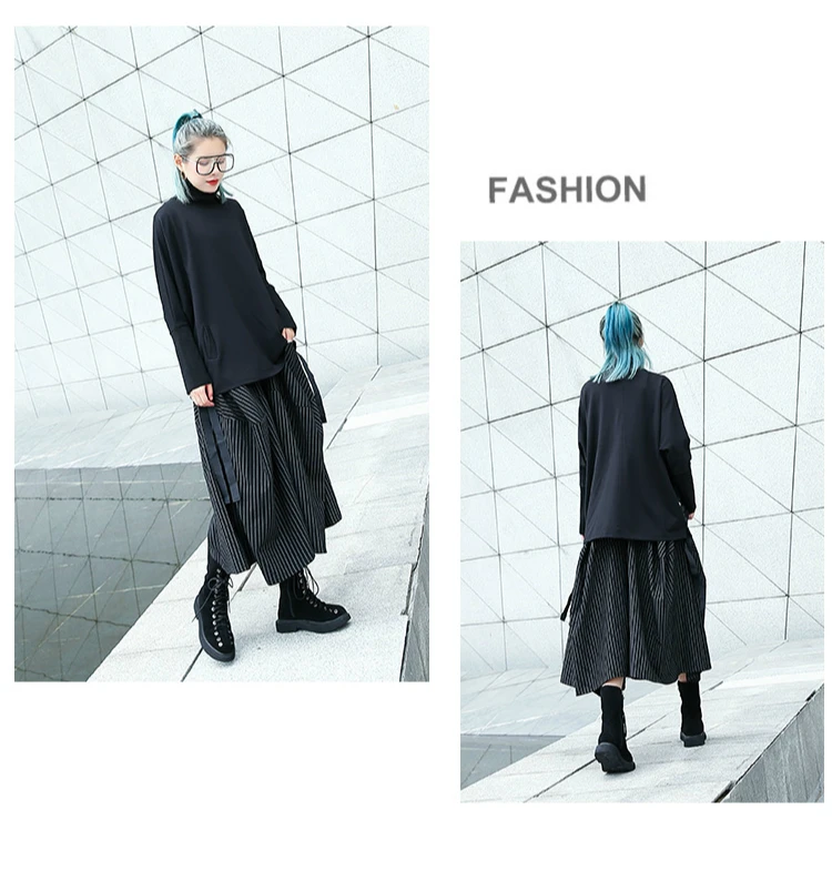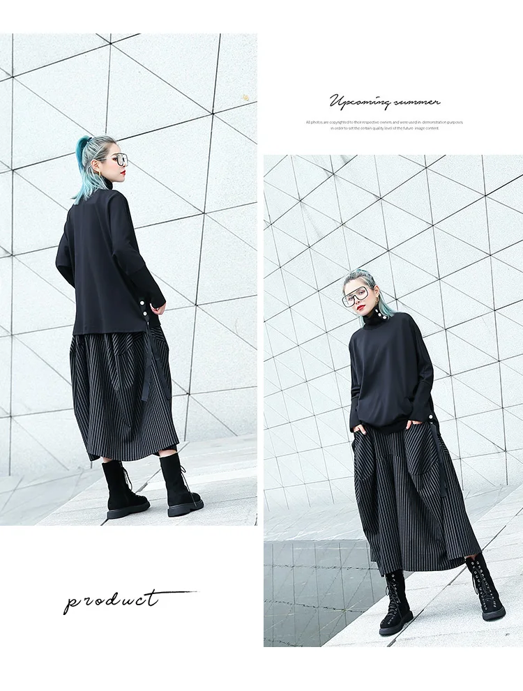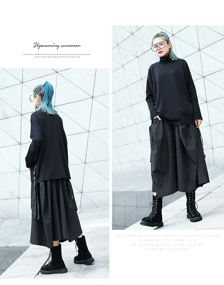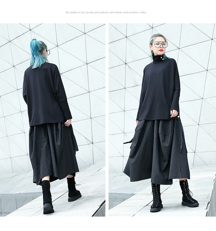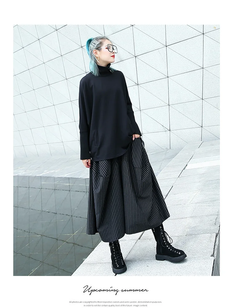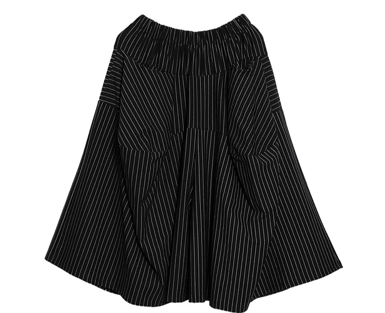 Женские широкие брюки в черно-белую полоску, эластичные брюки размера плюс с карманами длиной до середины икры, повседневные свободные штаны в стиле хип-хоп, весна-лето-осень 2020
