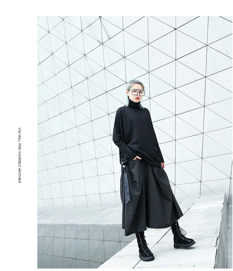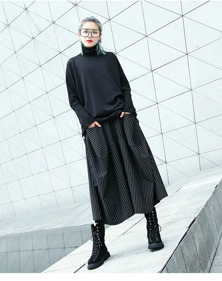Женские широкие брюки в черно-белую полоску, эластичные брюки большого размера плюс с карманами, повседневные свободные брюки в стиле хип-хоп длиной до икры