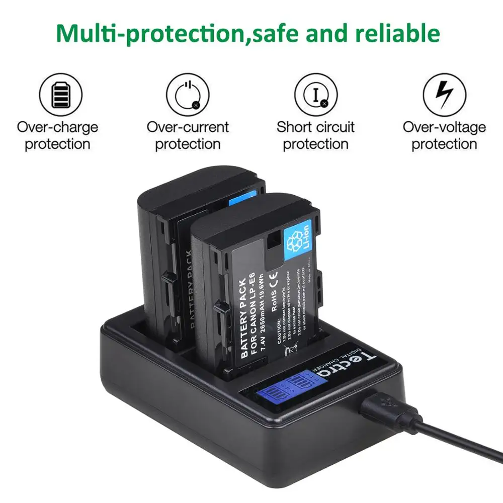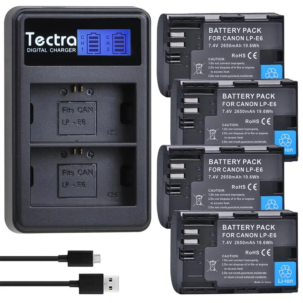 Аккумулятор 2650 мА ч, 4 шт., LP-E6 lp-e6n, для Canon EOS 5D Mark IV 5D2 5DS R Mark II III 3 6D 60D 60Da 7D 7DII + зарядное устройство + чехол для аккумулятора LPE6