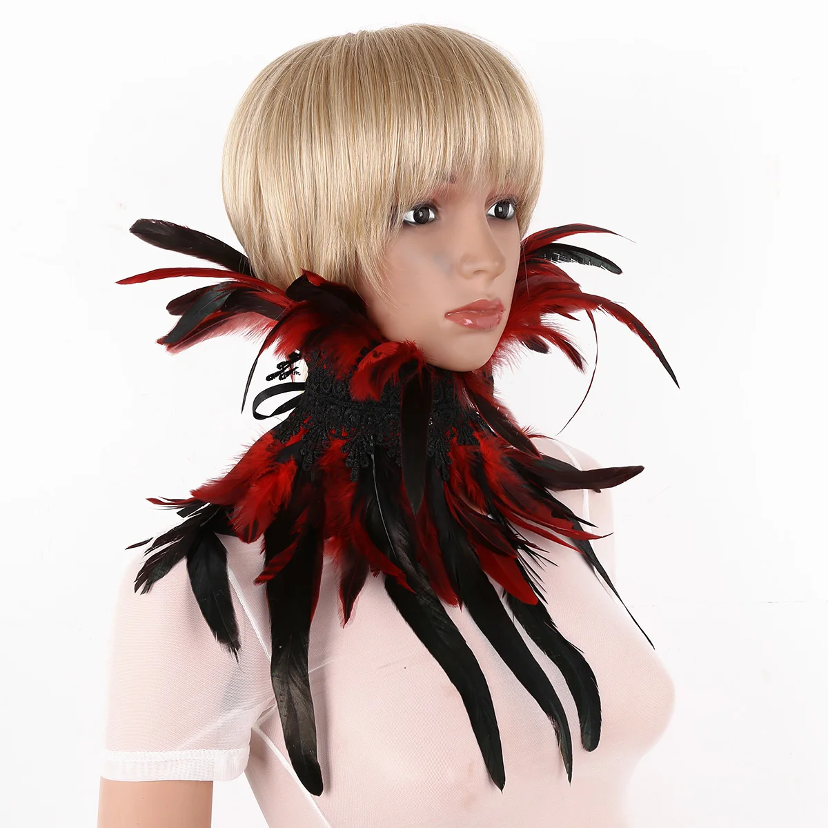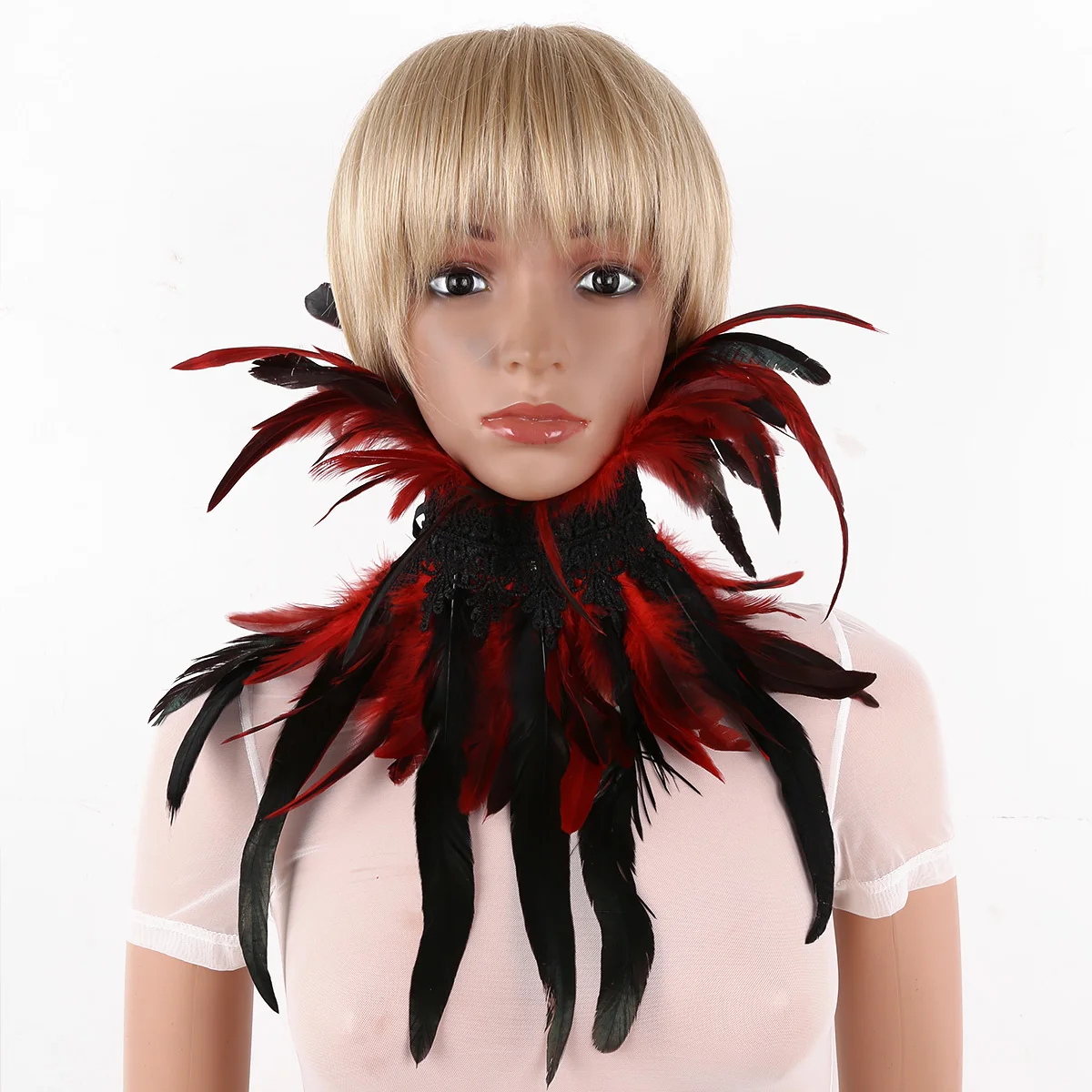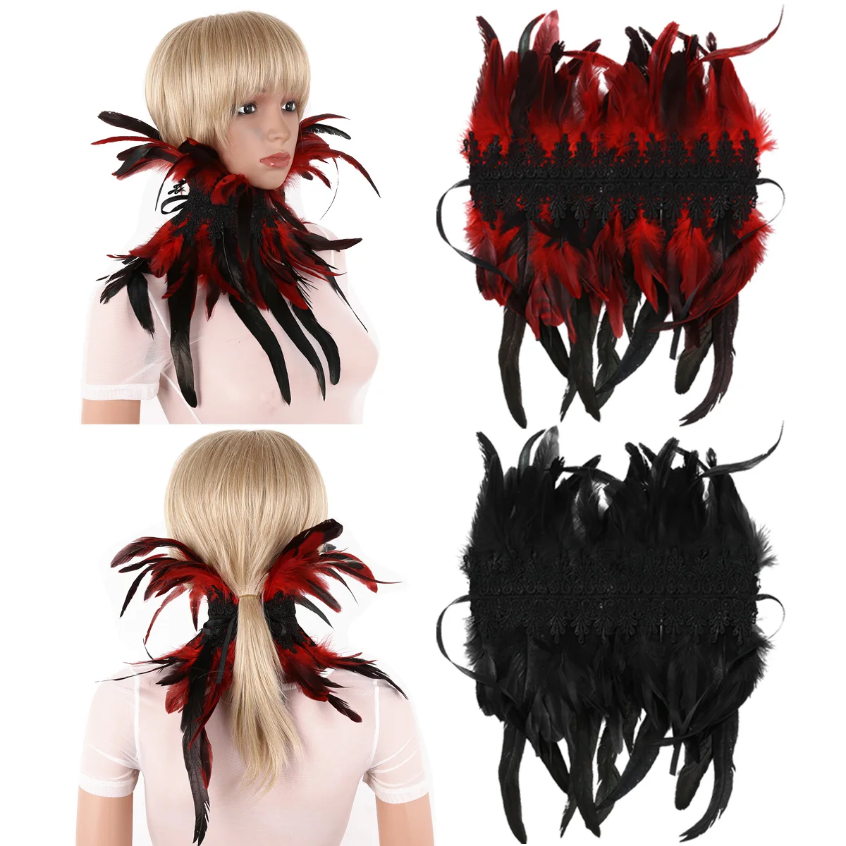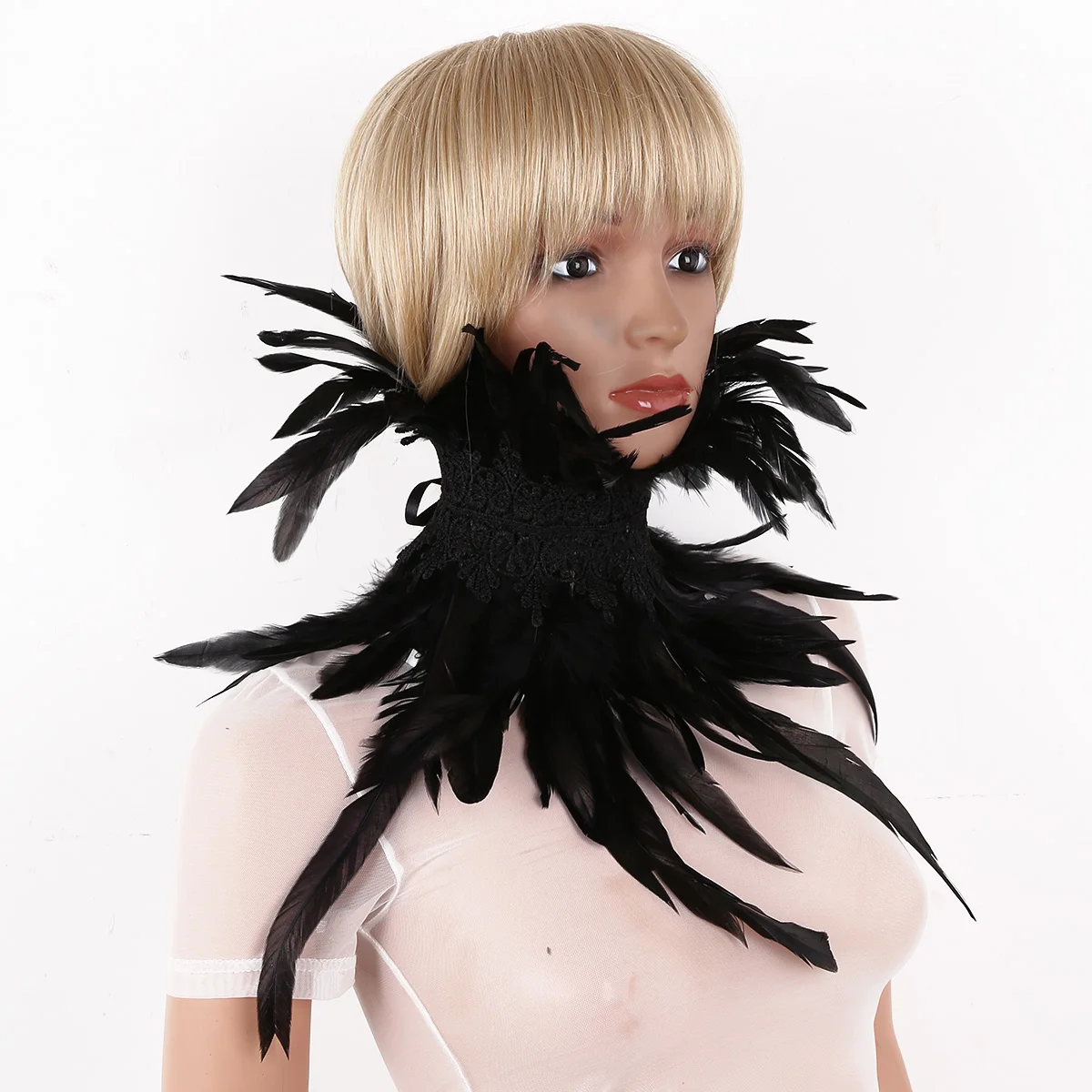 Воротник-чокер с вышивкой из перьев в стиле панк, готика, викторианский стиль, шали из натуральных перьев, кружевной воротник, шейный платок, аксессуары для косплея