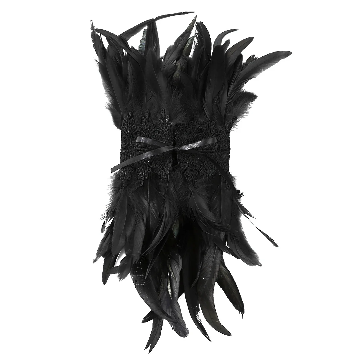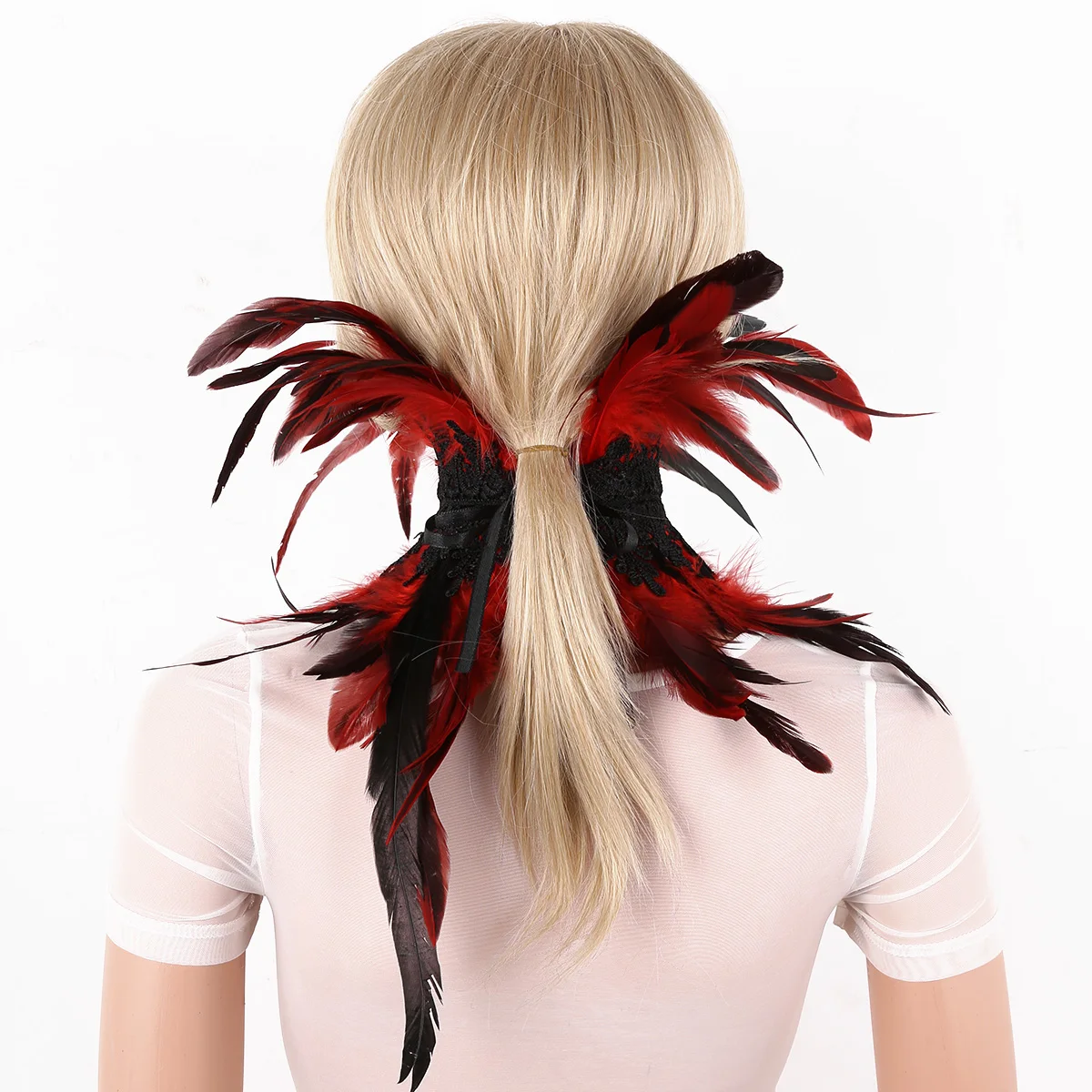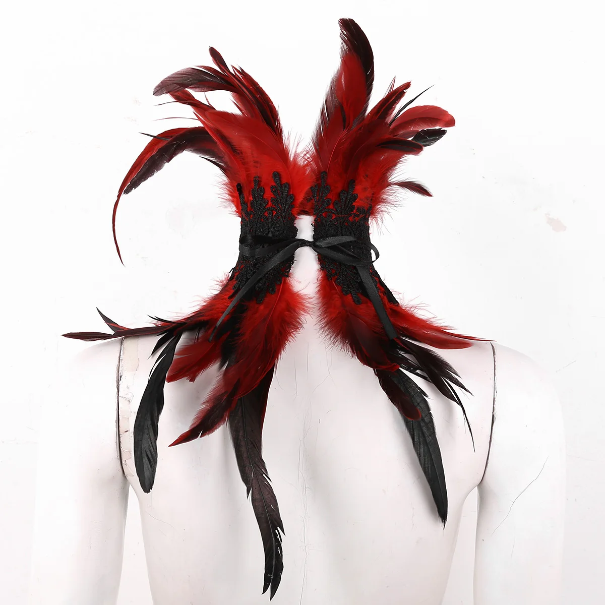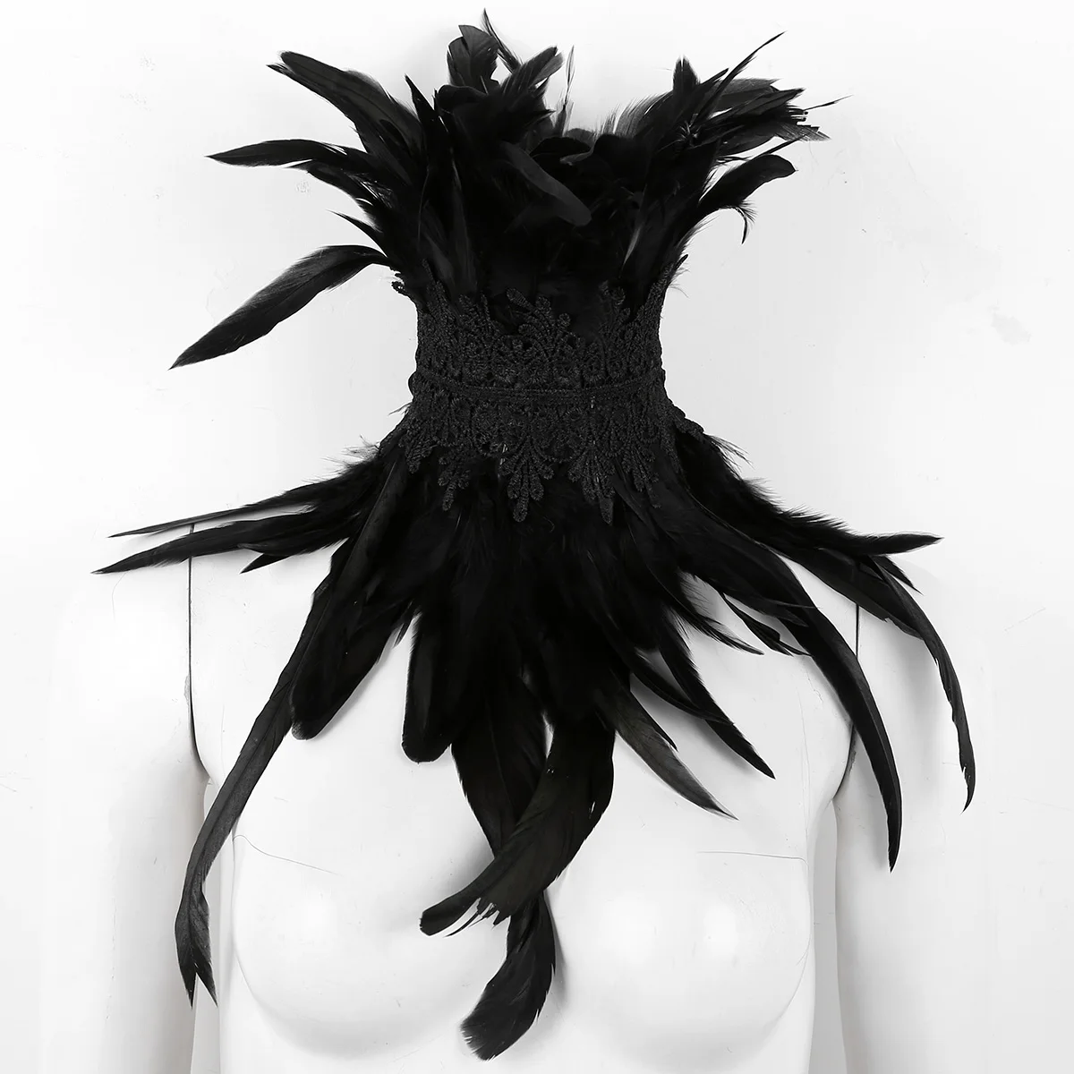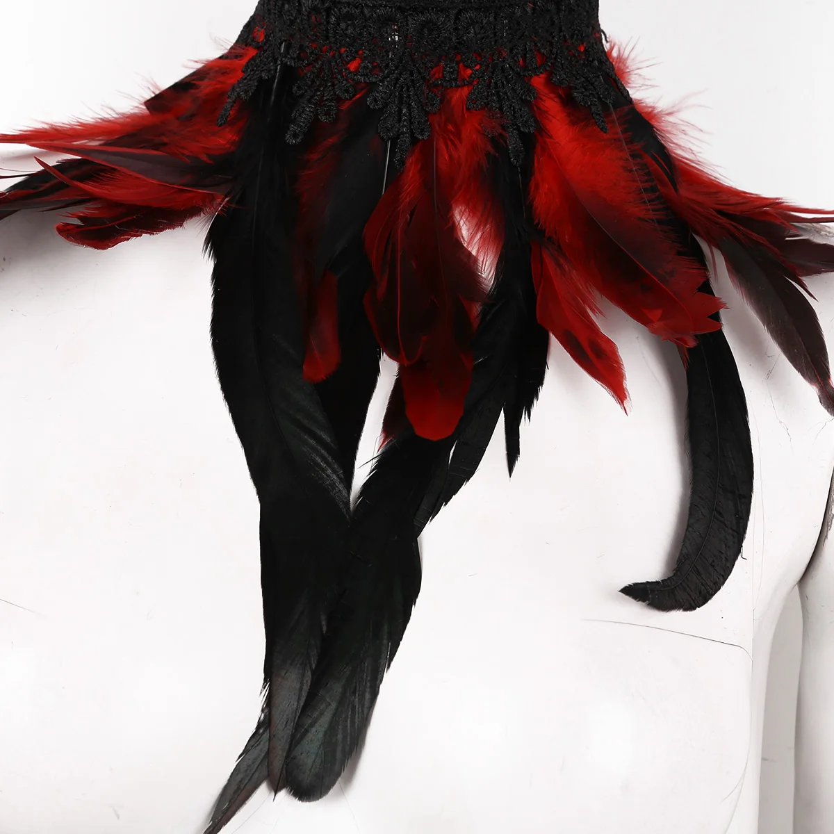Воротник-чокер с вышивкой из перьев в стиле панк, готика, викторианский стиль, шали из натуральных перьев, кружевной воротник, шейный платок, аксессуары для косплея