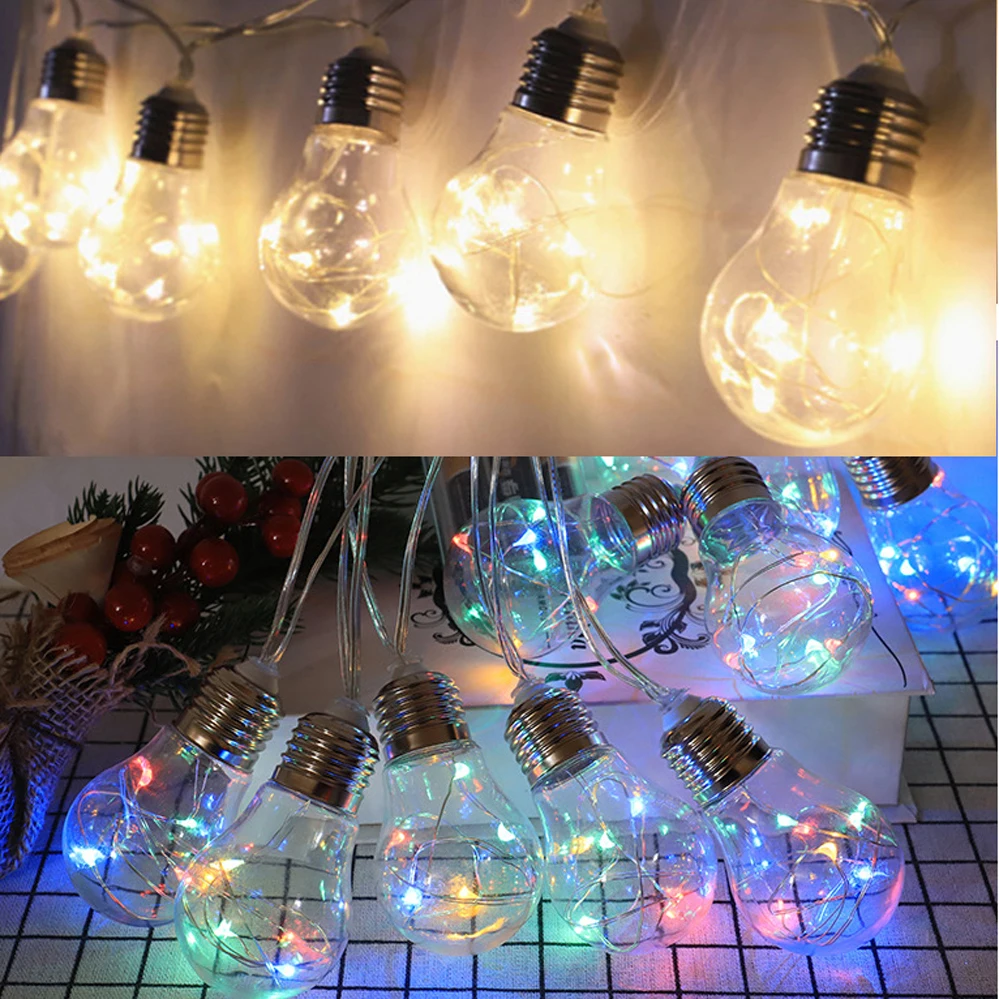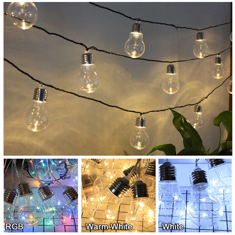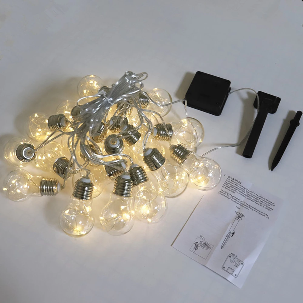 Уличная гирлянда на солнечной батарее с прозрачными круглыми лампочками, сказосветильник шнурок с лампочками, праздничная Рождественская декоративная лампа, 1020 ламсветильник к