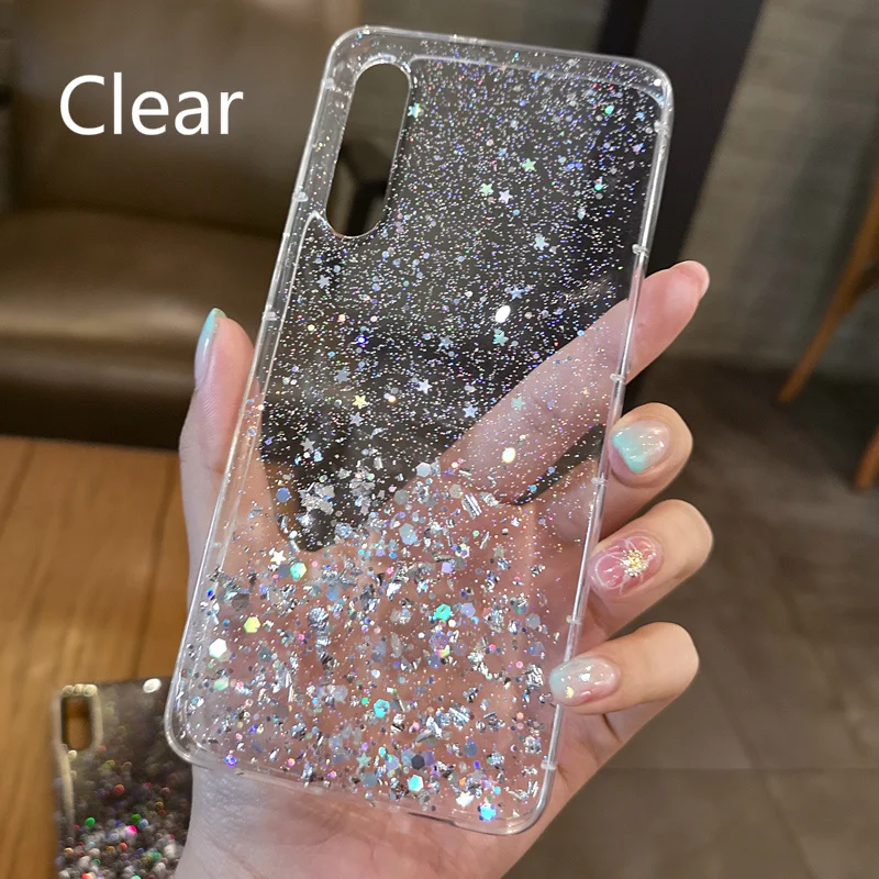 ХарактеристикиFashion Stylish Shinning Powder Clear Soft TPU Capa Fundas Coque