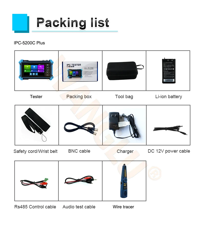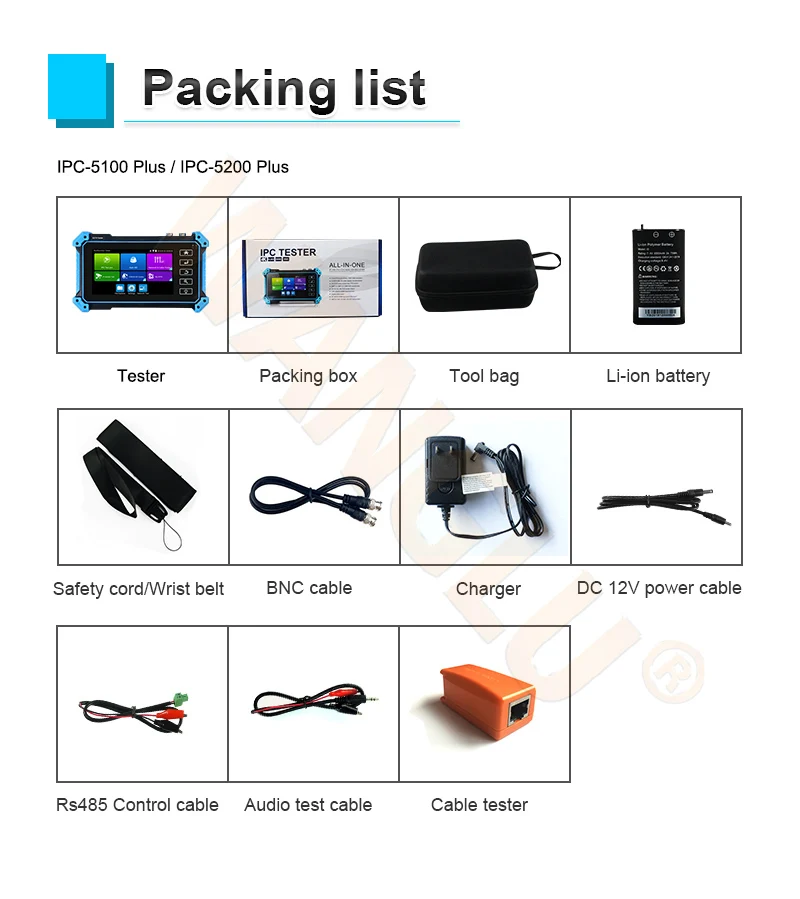 ● Литий-ионный Аккумулятор 7,4 В/3350 мАч, после 3-4 часов зарядки время работы сохраняется 6 часов(Для IPC-5100 плюс и IPC-5200 плюс)