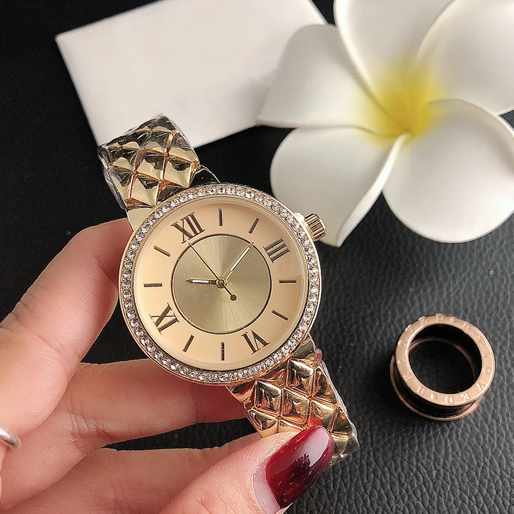 Часы наручные женские кварцевые со стразами, модные простые водонепроницаемые, золотистые, 2020
