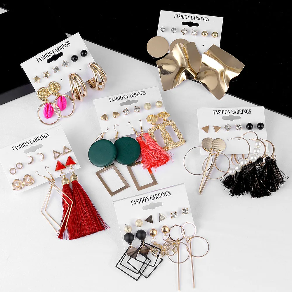 Женские Висячие серьги в винтажном стиле, серьги-подвески из акрилового сплава в богемном стиле с кисточками и жемчугом, вечерние серьги с геометрическим узором, 2020
