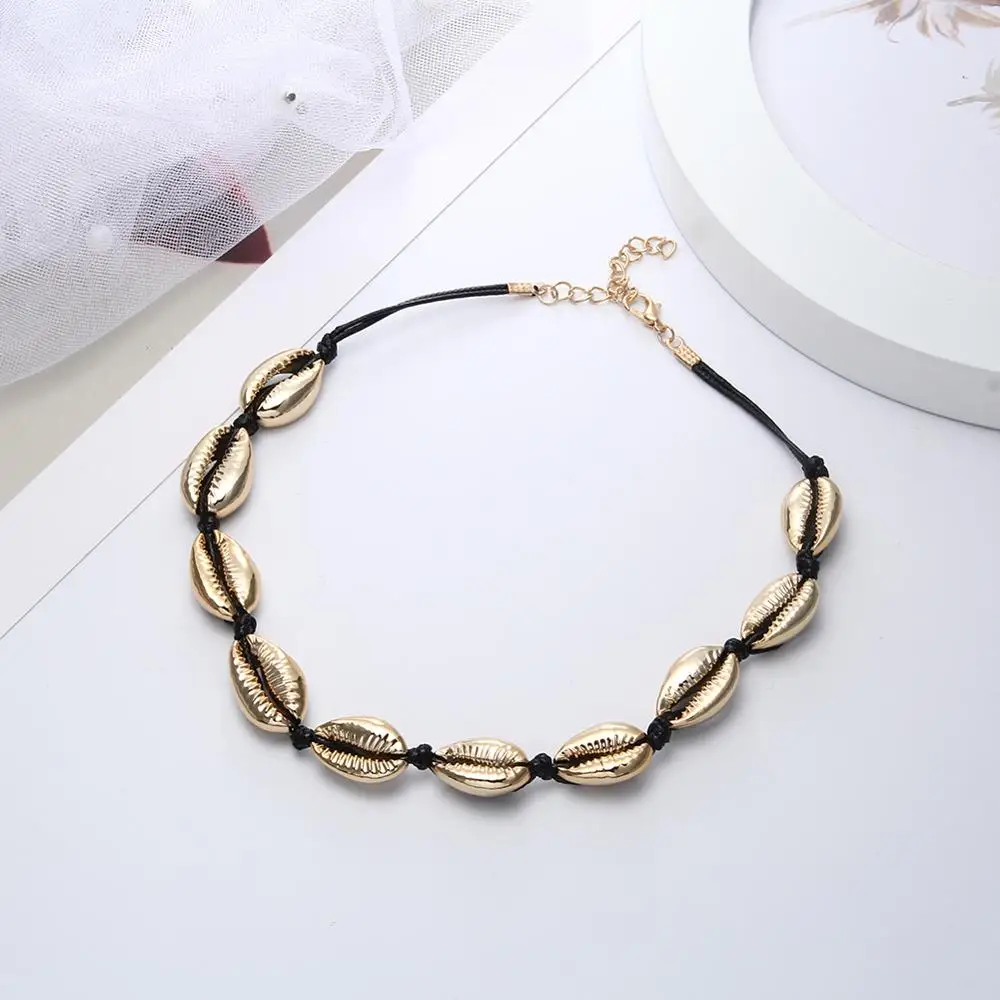 Женское Ожерелье в богемном стиле, плетеный чокер в виде раковины, летняя цепочка для девушек, модное ожерелье, ювелирные изделия, подарок для вечерние ручной работы