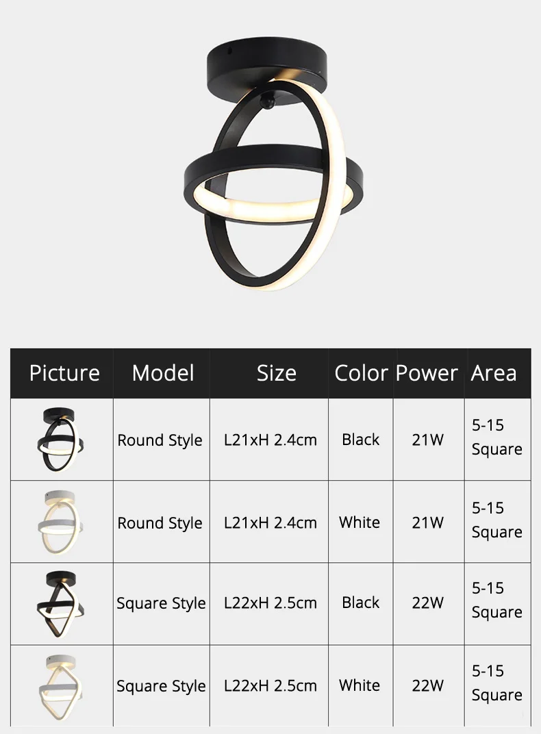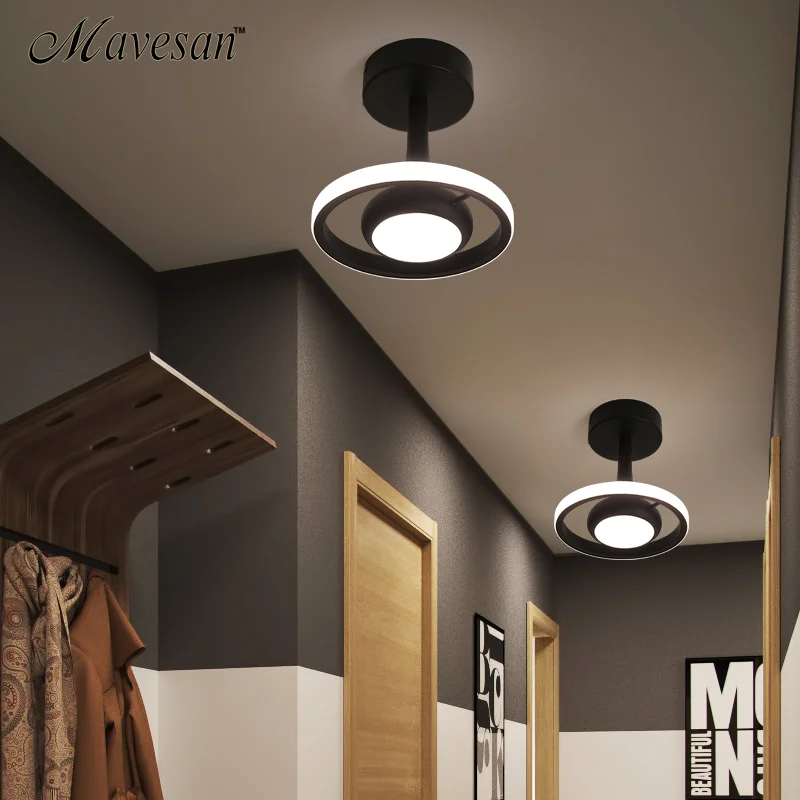 Современные светодиодные потолочные лампы для прохода балкона, светильник для прихожей, прихожей, белый и черный цвета, поверхностное крепление, потолочный светильник, AC85-265