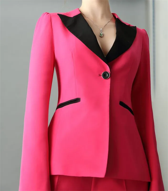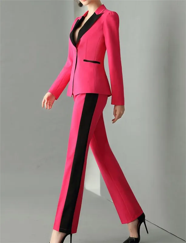 Женский брючный костюм цвета фуксии на заказ, офисные брючные костюмы, комплект из 2 предметов, однобортный женский пиджак и брюки-карандаш, Женский комплект