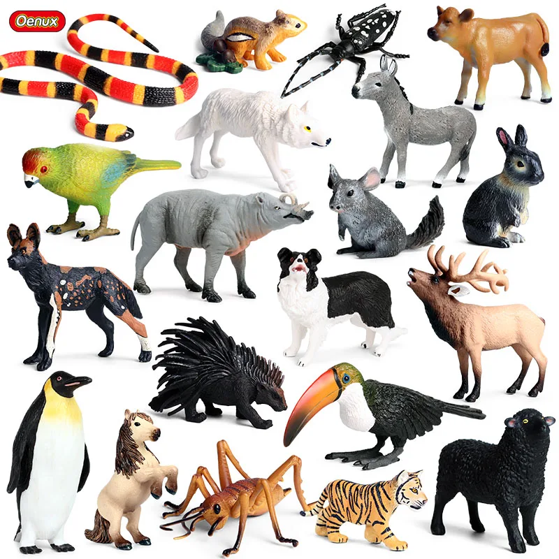 Oenux лес дикие животные лошадь Тигр собака насекомое змея корова волк фигурка модель фигурки миниатюрные обучающие игрушки для детей