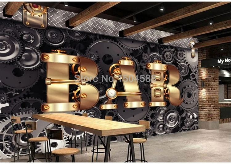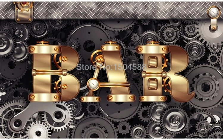 Пользовательские 3D обои Европейский стиль металлическое письмо механическое снаряжение фото настенные фрески гостиная ресторан KTV бар фон фрески