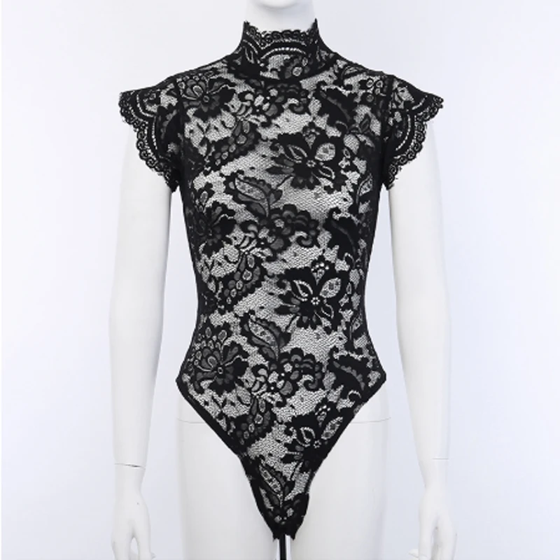 Женское сексуальное кружевное нижнее белье, боди с высоким воротник...