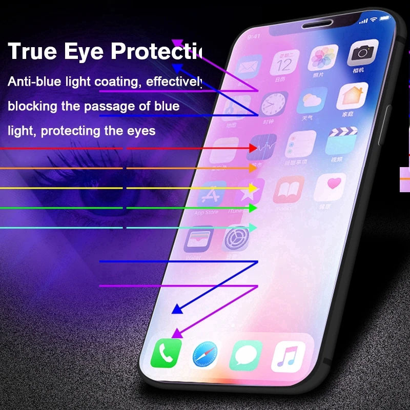 Закаленное стекло 9H с защитой от синего излучения для iPhone X XS ...