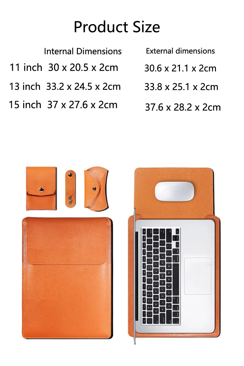 Чехол BGreen из искусственной кожи для ноутбука, водонепроницаемый чехол для планшета, ПК, ноутбука, с ковриком для мыши, кабелем и адаптером для Macbook