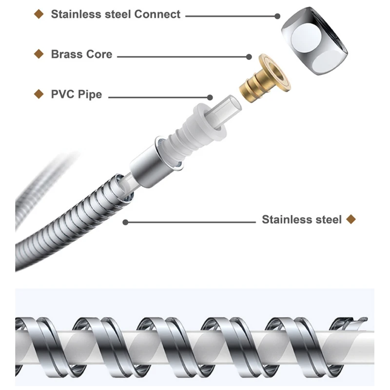 Сантехнический шланг для ванной 1,5 м, изделия для ванной с хромированным покрытием, аксессуары для ванной комнаты, гибкие шланги для душа из нержавеющей стали 304