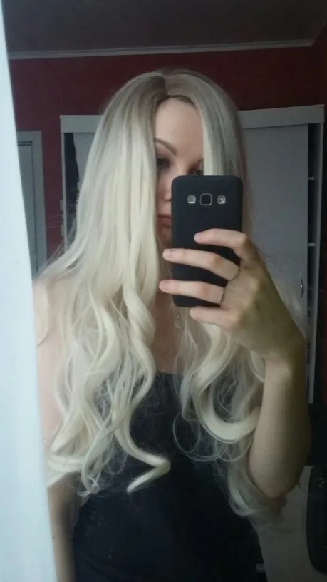 Парик из высокотемпературного волокна. Волосы очень длинные и красивые, если выпрямить будут ещё длиннее. Волосы не путаются, выглядят натурально и естественно. Цвет светлый блонд, есть небольшая растяжка у корней светло-коричневая. Парик с сеточкой, утягивается с помощью двух резинок. В комплекте шапочка для сбора волос. Доставка быстрая. Рекомендую!