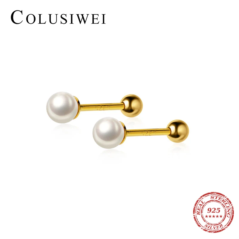 Colusiwei натуральная 925 стерлингового серебра элегантность деликатные серьги с белой жемчужиной серьги-гвоздики Модные женские ювелирные изделия Bijoux (украшения своими руками)