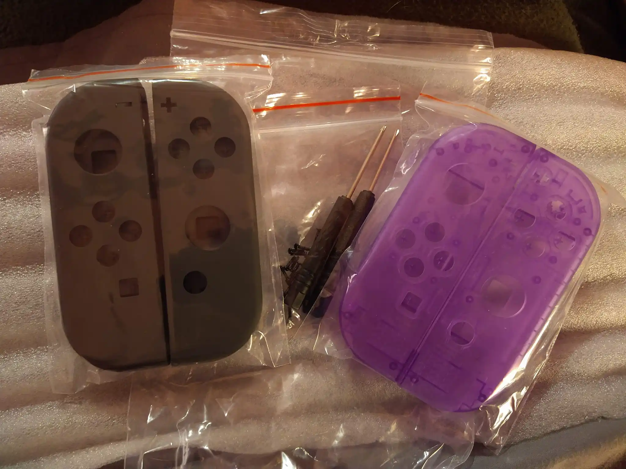 Прибыл вовремя, как описано. Хорошо сидит вместе, установка была гладкой. Я использую только левый, так как использую серый и атомно-фиолетовый комплект N64. Кнопки захвата немного сложнее нажимать сейчас, но все еще пригодны для использования. Все остальные кнопки отлично работают. Серый темнее, чем по умолчанию СЕРЫЙ контроллер N64 был, но это был единственный серый, который я мог найти в рамках моего расходов, и он все еще выглядит действительно красиво. Мигание от процесса формовки немного грубее, но я не возражаю. Выглядит очень красиво, как только все будет установлено. Пластик немного отличается от реальных корпусов Joycon, на нем нанесено почти резиновое покрытие. Все еще хорошо скользит по рельсам, но ощущается немного туго. Я, вероятно, использую оставшуюся оболочку для консоли моей сестры. Поставляется с парой крошечных отверток, которые выглядят немного хрупкими, и некоторыми дополнительными винтами, которые я не использовал, потому что у меня уже был лучший набор отверток Nintendo. В целом я рекомендую его, за цену это достойно.