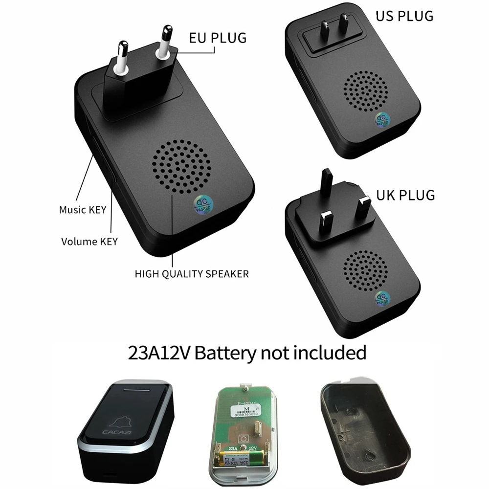 Беспроводной дверной звонок CACAZI Home, водонепроницаемый, 300 м, пульт дистанционного управления, 1, 2 кнопки, 1, 2, 3 приемника, вилка США, ЕС, Великобритании, Австралии, смарт-звонок