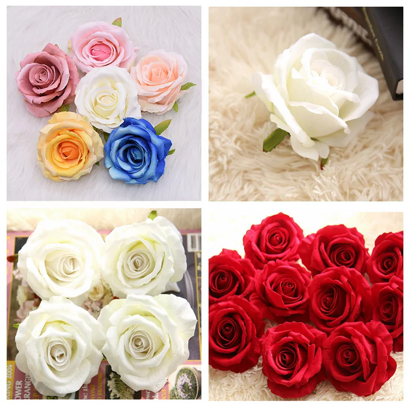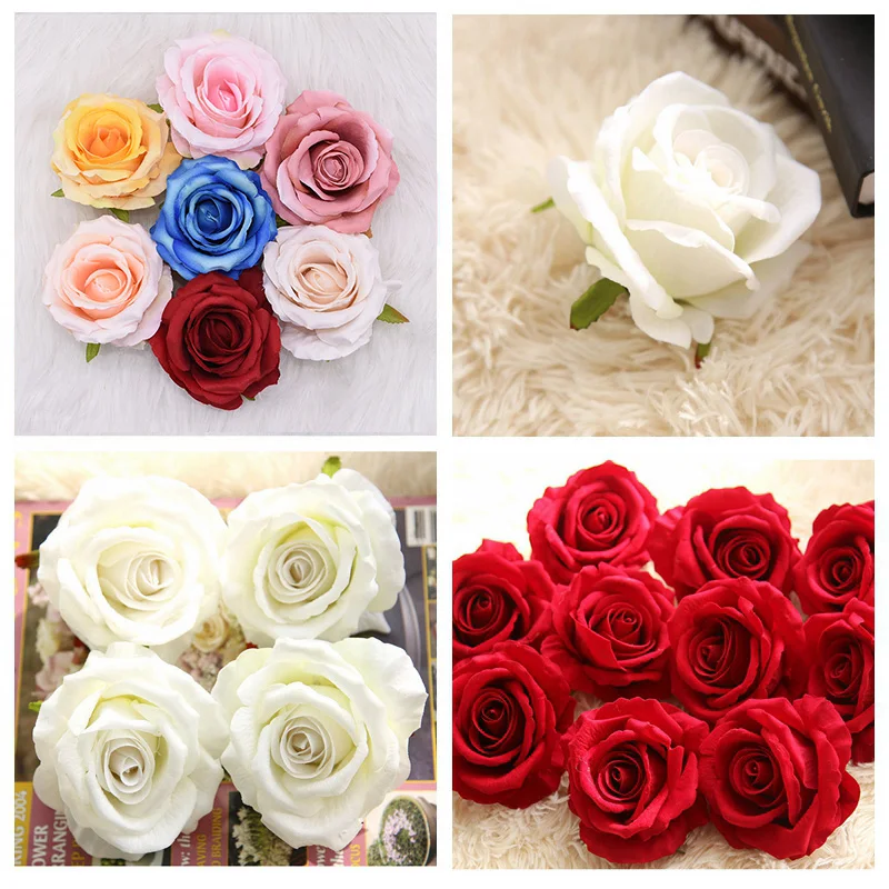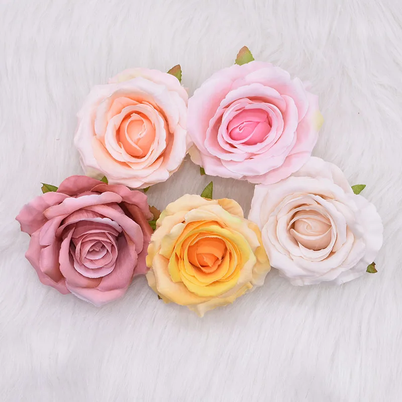 5 шт., высокое качество, 10 см, искусственные цветы, шелк, бархат, роза, бежевый, красный цветок, головки, домашний декор, Свадебная вечеринка, украшения, сделай сам